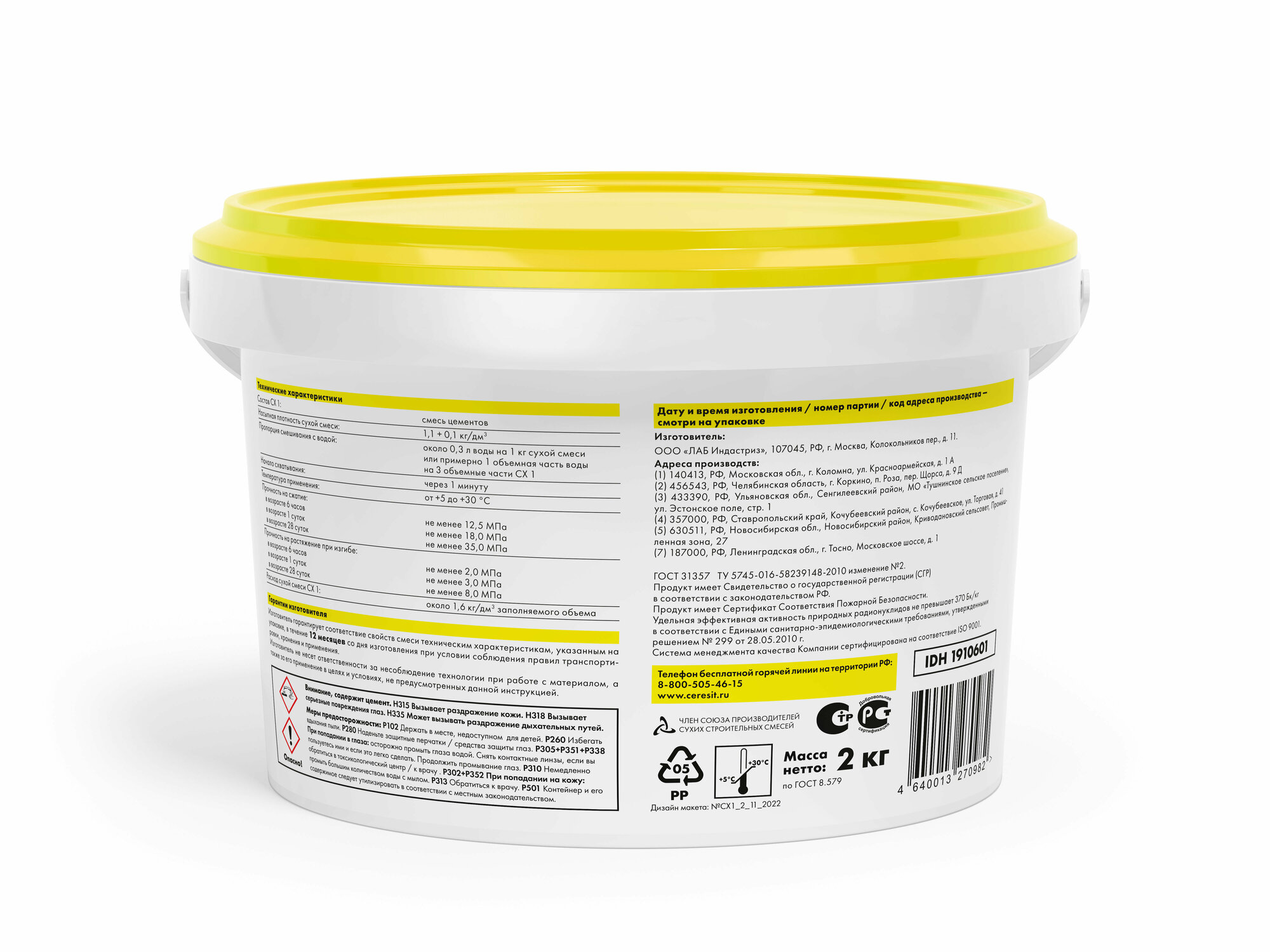 Блиц-цемент, гидропломба для остановки водопритоков Ceresit CX 1 (2кг)