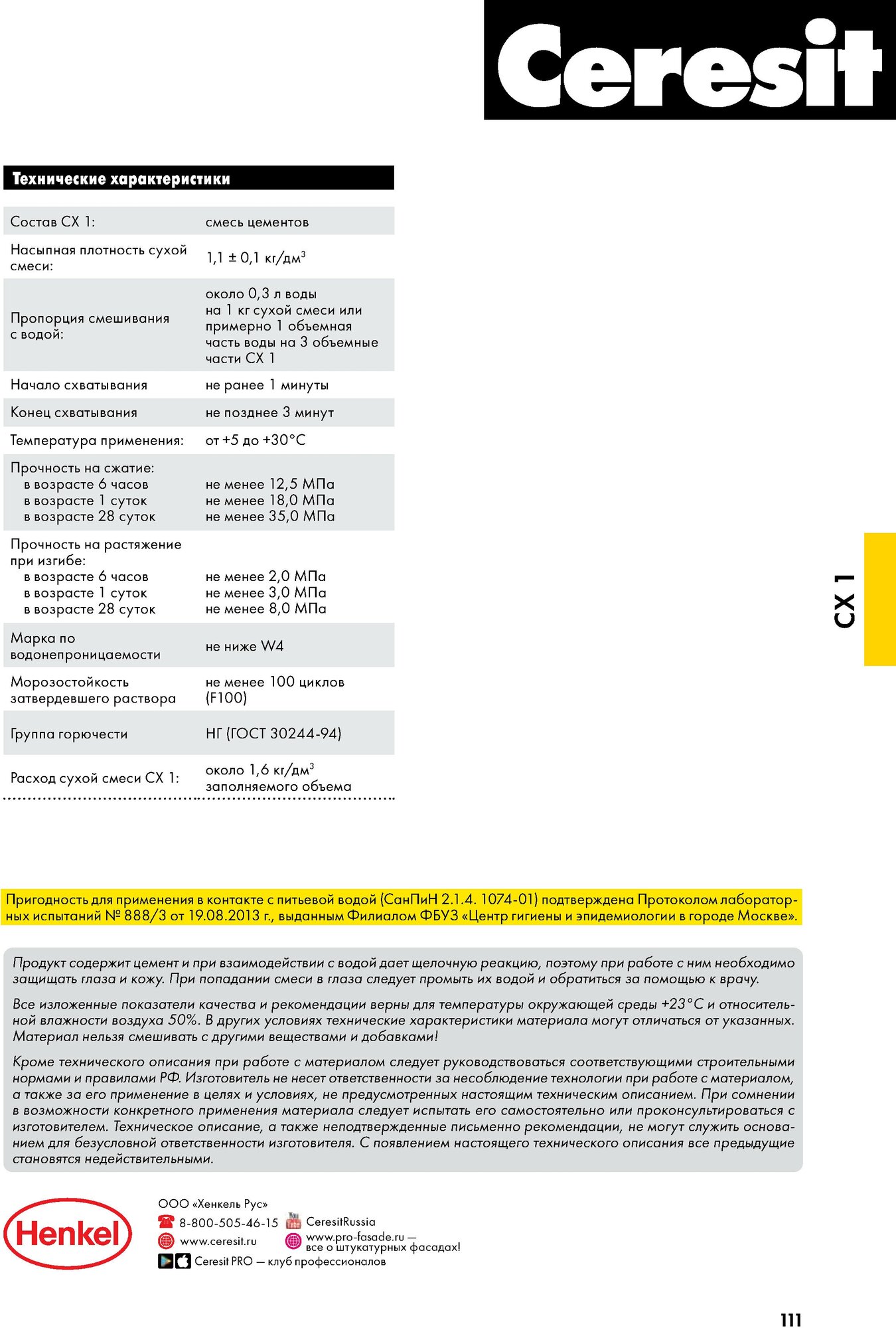 | Жизнеспособность раствора (ч) | 0.1 ч |