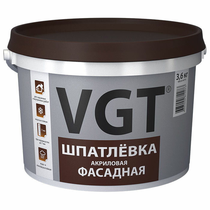Шпатлёвка VGT фасадная, акриловая, водостойкая 18кг интересное: