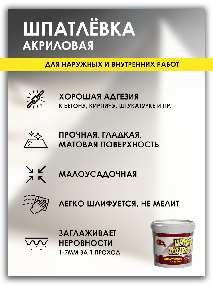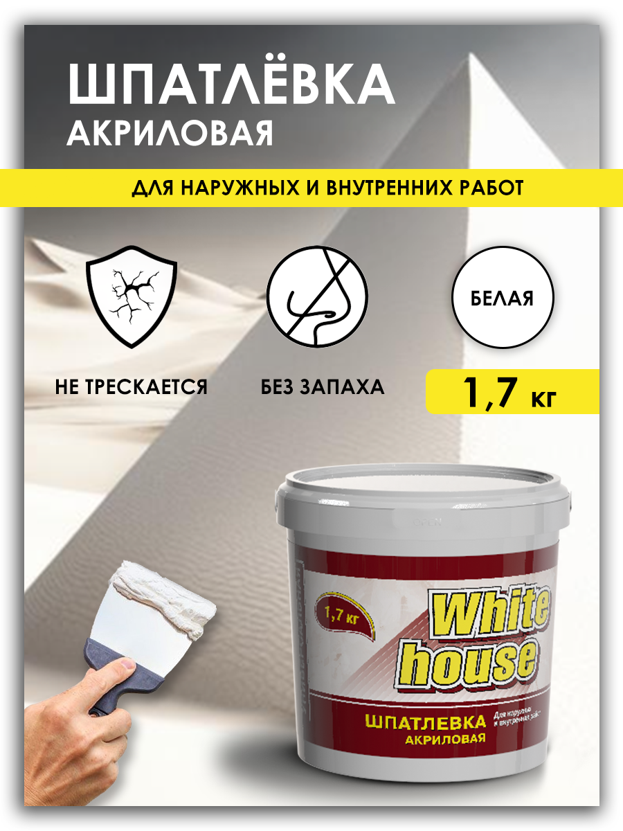 Шпатлевка Универсальная White House 1.7кг до 7мм для Внутренних и Наружных Работ, Белая.