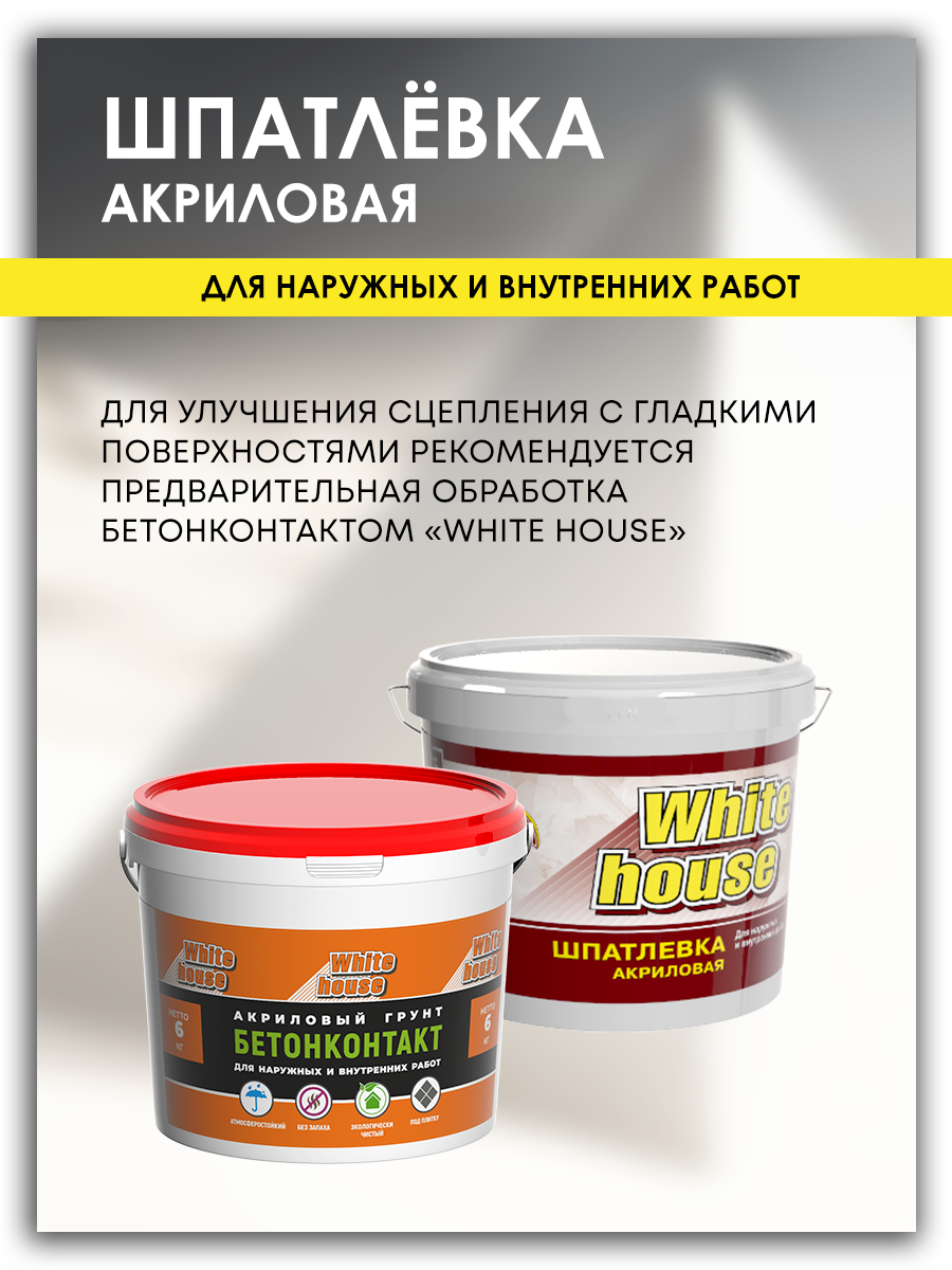 Шпатлевка акриловая финишная для стен и потолка White House 7,5кг