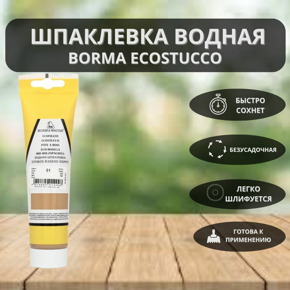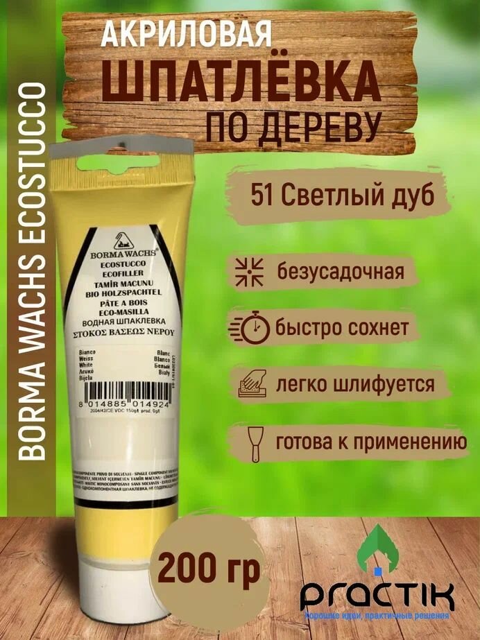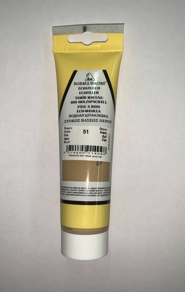 Шпаклёвка по дереву акриловая на водной основе безусадочная, в тубе, Borma Wachs Ecostucco 200гр., Светлый дуб 51, Быстро сохнет, легко шлифуется.