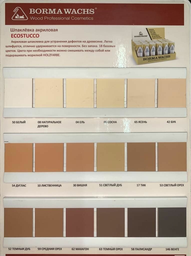 Шпаклёвка по дереву акриловая на водной основе безусадочная, в тубе, Borma Wachs Ecostucco 200гр, Дуглас 54, Быстро сохнет, легко шлифуется.
