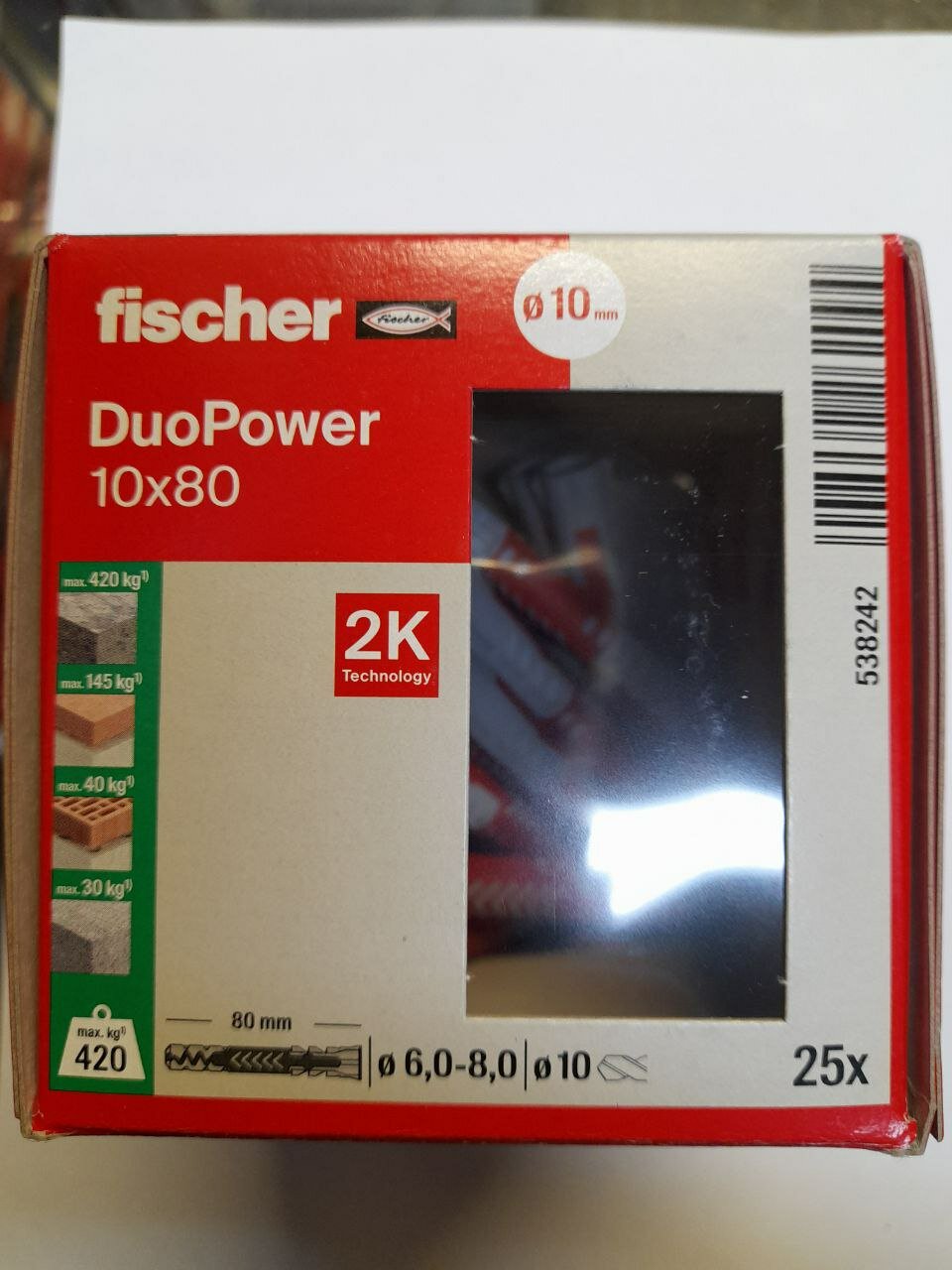 СохранитьДюбель Fischer DUOPOWER 10X80 (25 шт.) интересное: