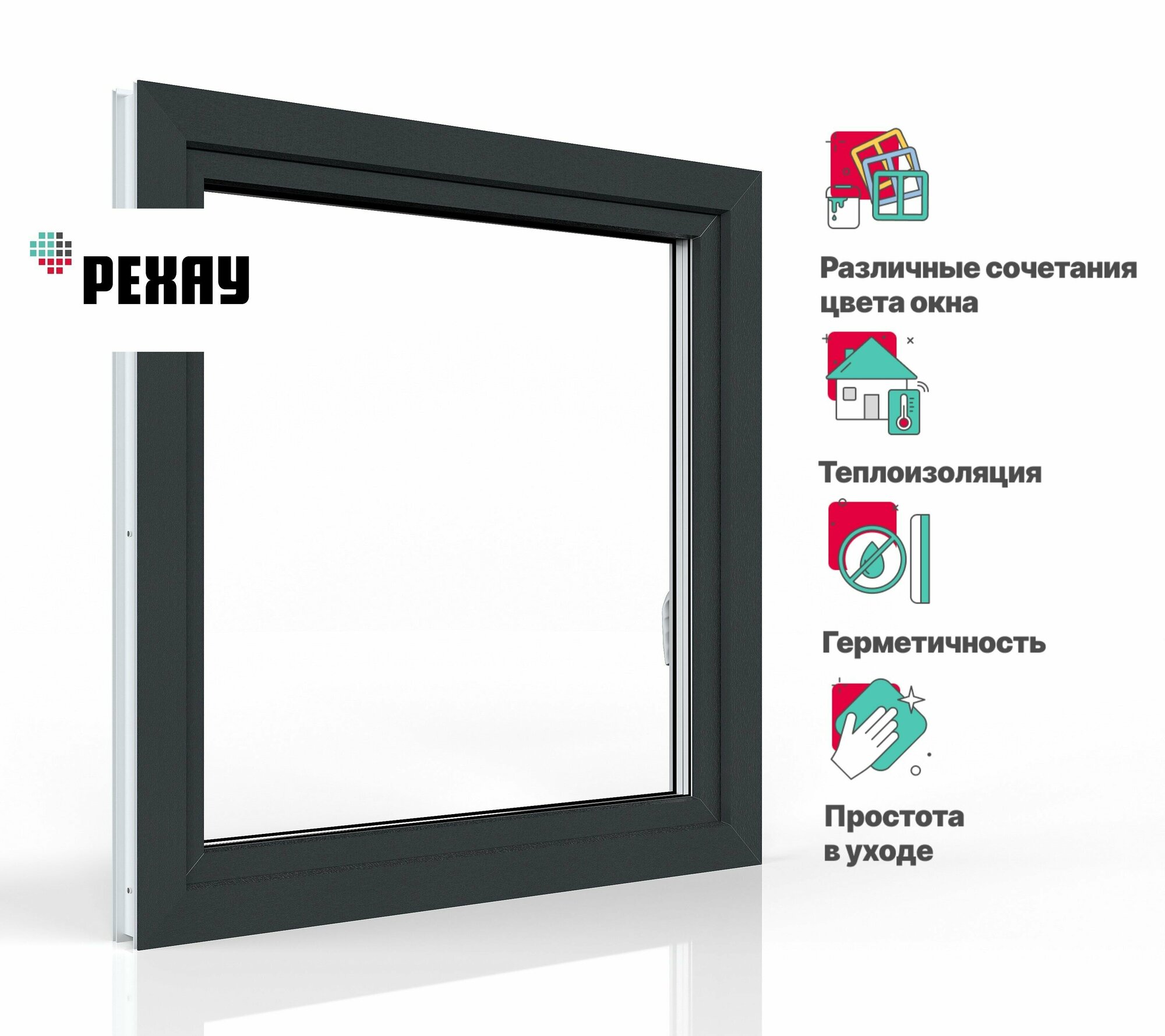 Пластиковое окно ПВХ РЕХАУ BLITZ 900х600 мм (ВхШ) с учетом подставочного профиля, одностворчатое, поворотно-откидное правое, двухкамерный стеклопакет, антрацитово-серый снаружи