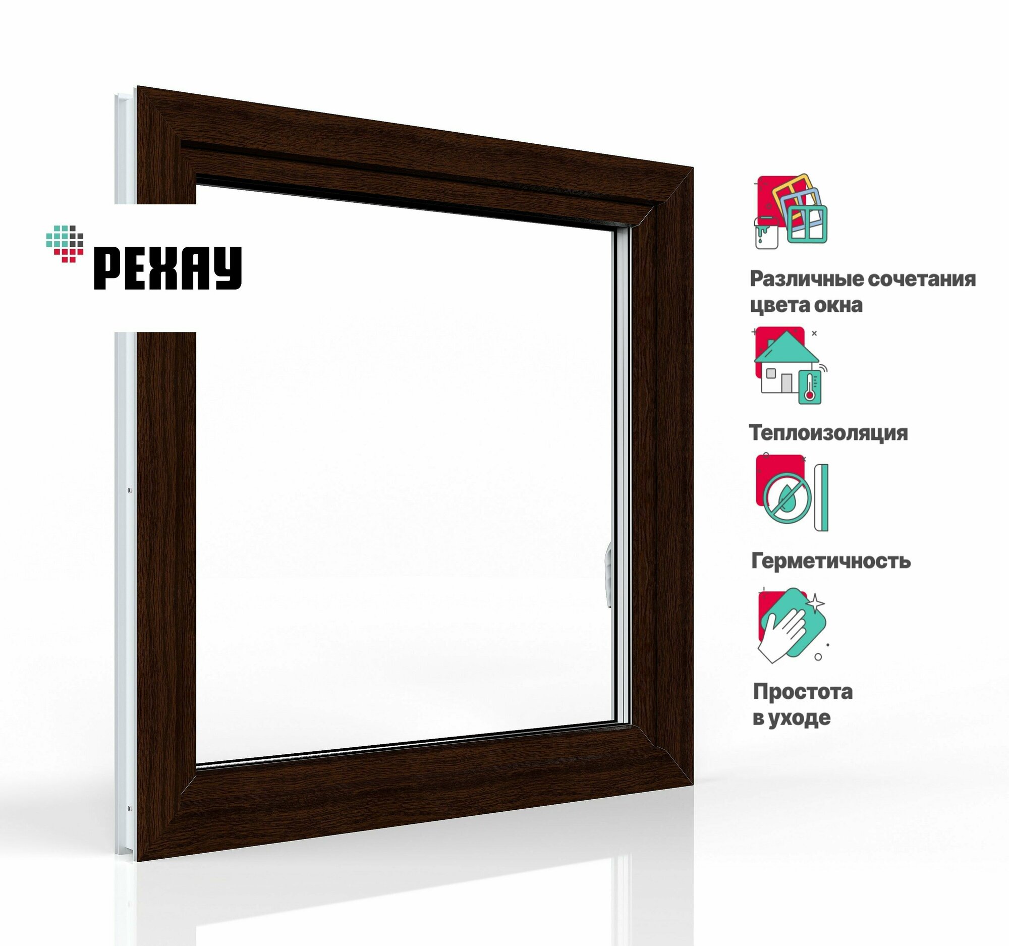 Пластиковое окно ПВХ РЕХАУ BLITZ 1000х500 мм (ВхШ) с учетом подставочного профиля одностворчатое, поворотно-откидное правое, двухкамерный стеклопакет, темный дуб снаружи