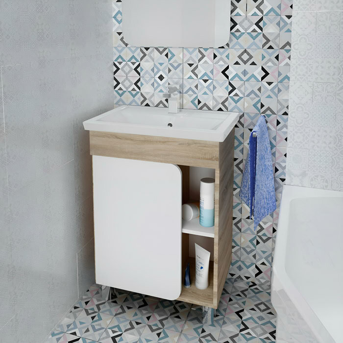 Тумба белый глянец/дуб сонома 57 см 1Marka Nuvo У76062