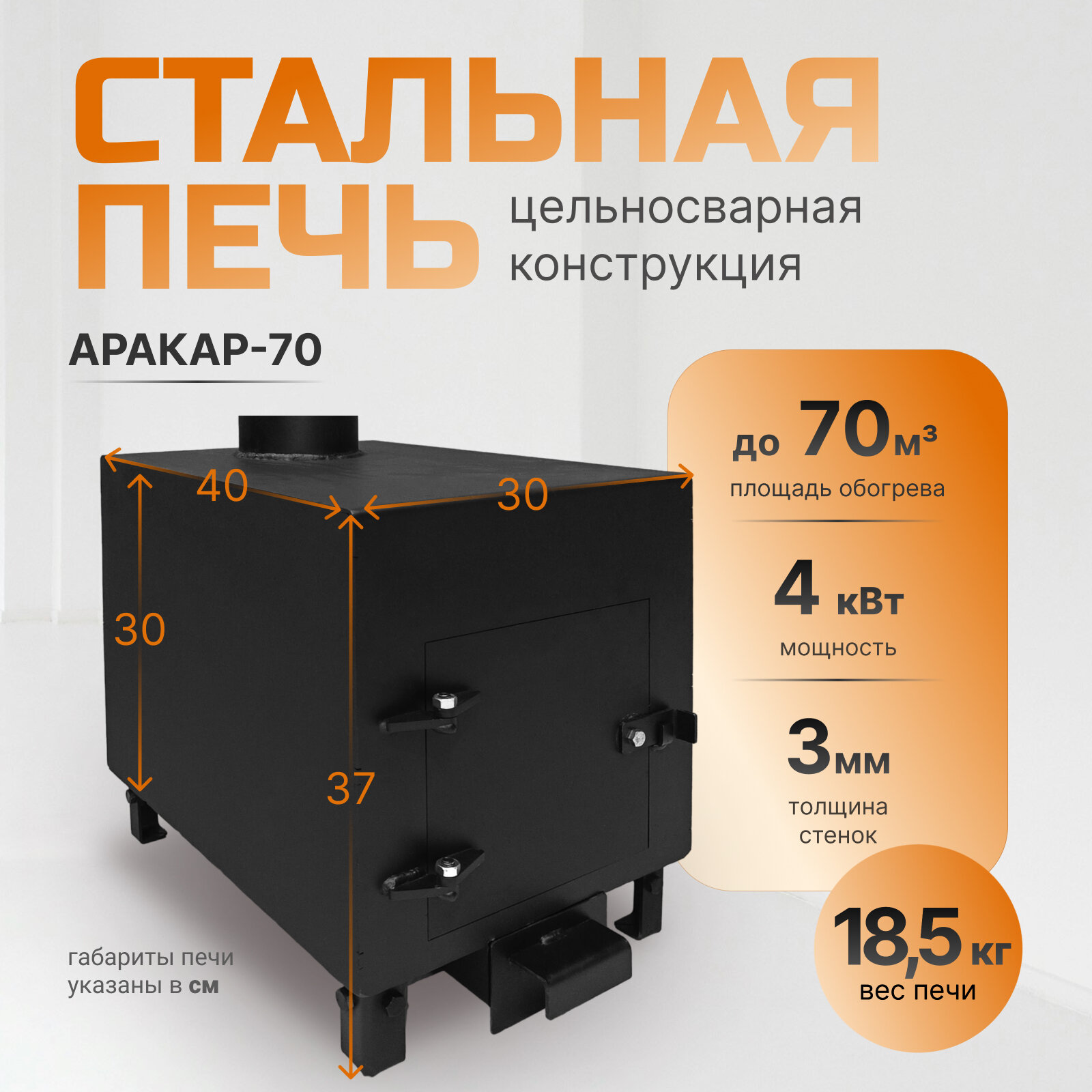 Печь буржуйка колосниковая Аракар-70, сталь 3мм, окрашена термостойкой краской интересное: