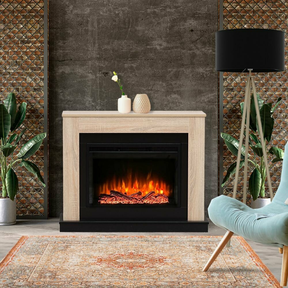 Купить Электрический камин ELEKAM LIGHT max в цвете дуб сонома с пультом, обогревом и звуком потрескивания дров (Электрокамин)