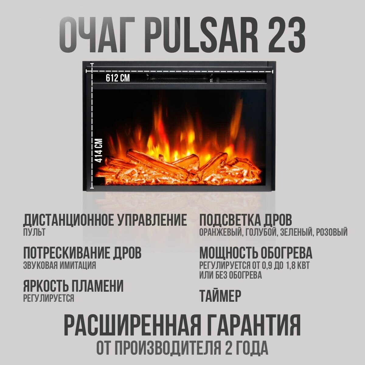 Электрический камин ELEKAM TORRENT в цвете графит с пультом, обогревом и звуком потрескивания дров (Электрокамин)
