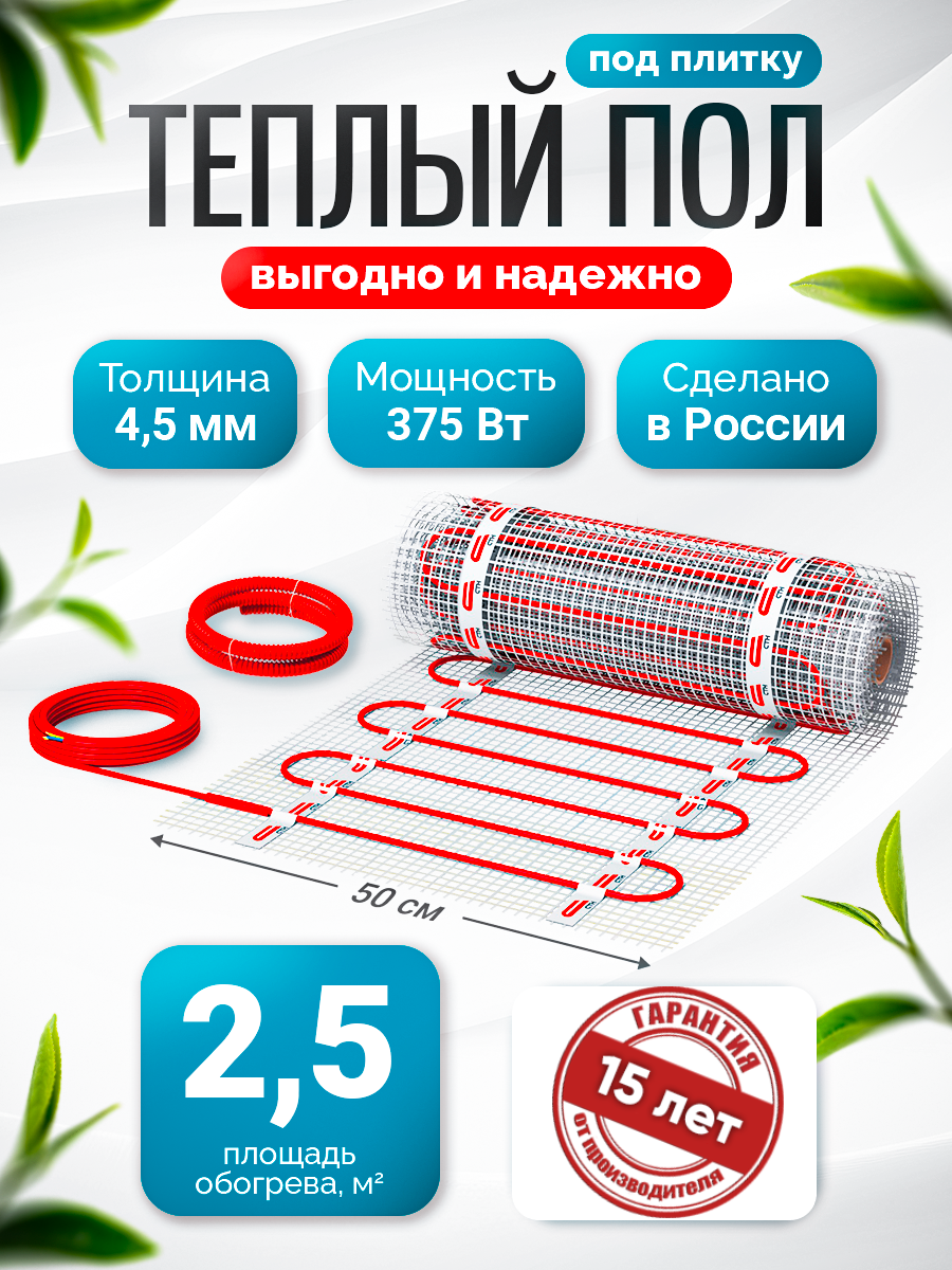 Тёплый пол с терморегулятором электрический под плитку 2.5м2