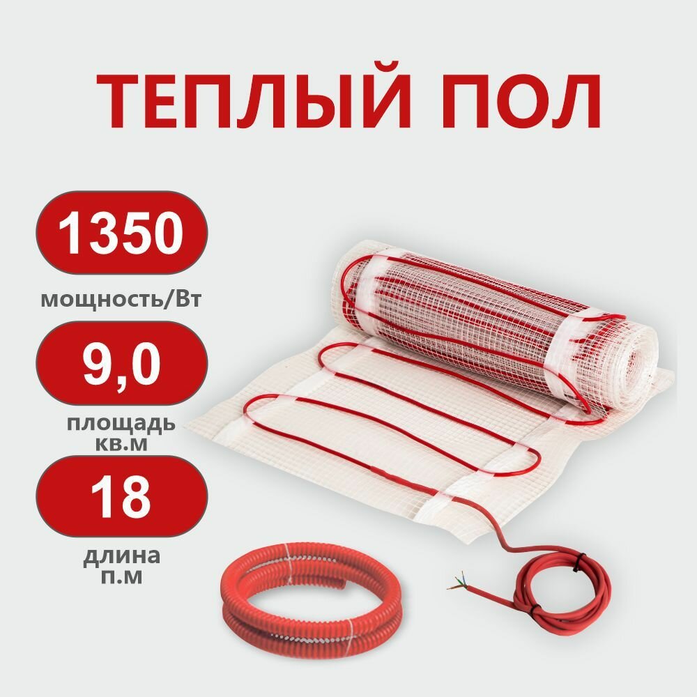 Нагревательный мат, СТН, КМ Light - 1350-9,0 150 Вт/м2 с программируемым терморегулятором, 9,0 м2, 1800х50 см