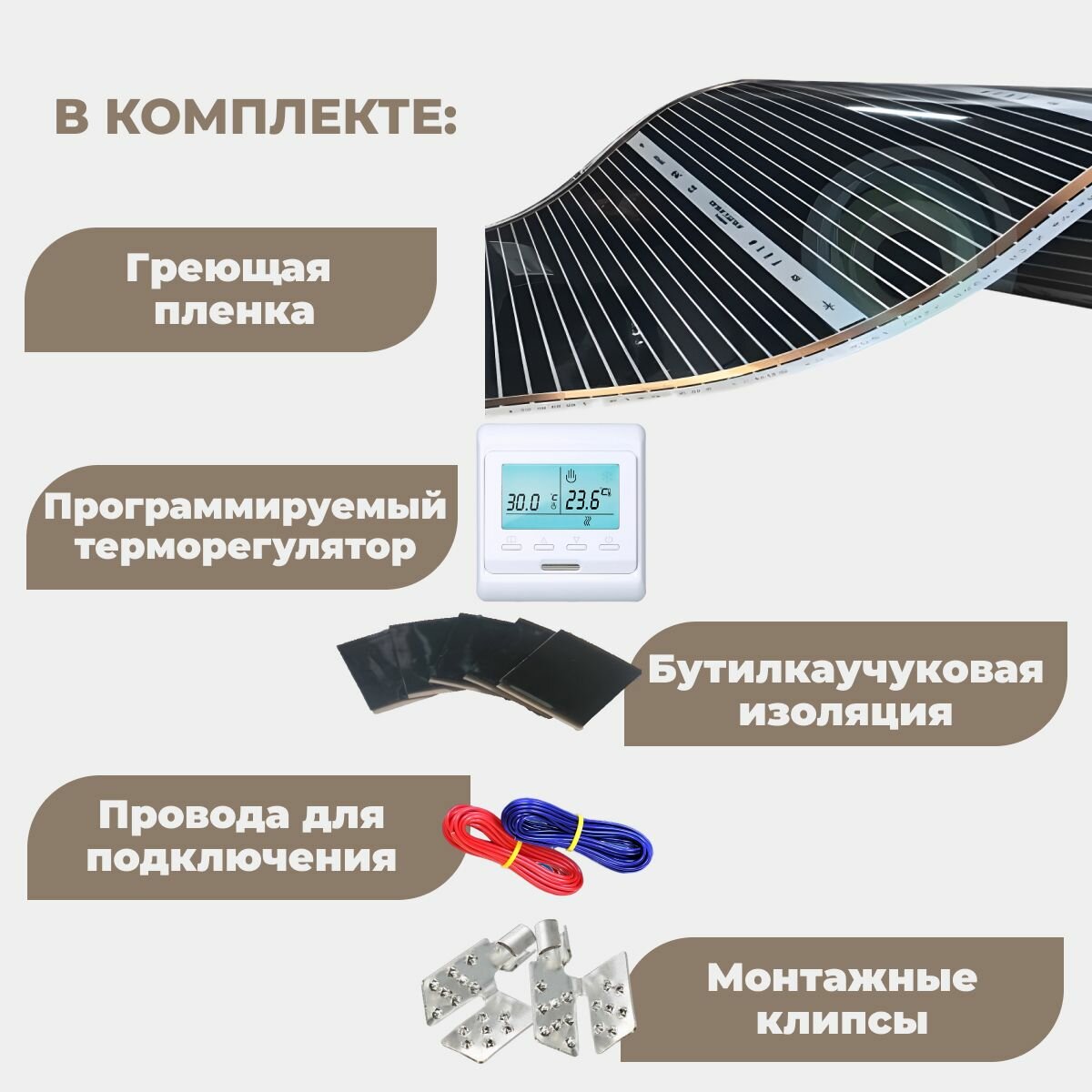 Пленочный теплый пол 1 м.п. комплект ширина 80см с электронным терморегулятором