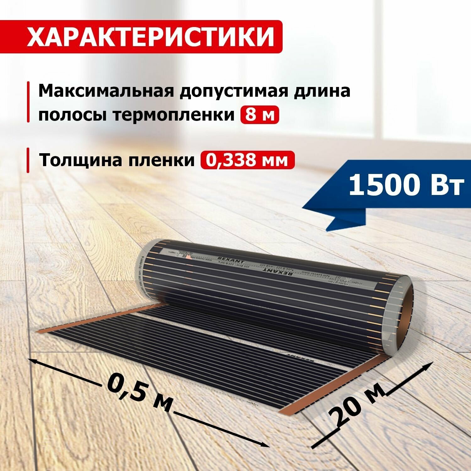 Пленочный теплый пол REXANT Optima 150, площадь 10 м2, 0.5х20 м, 1500 Вт интересное: