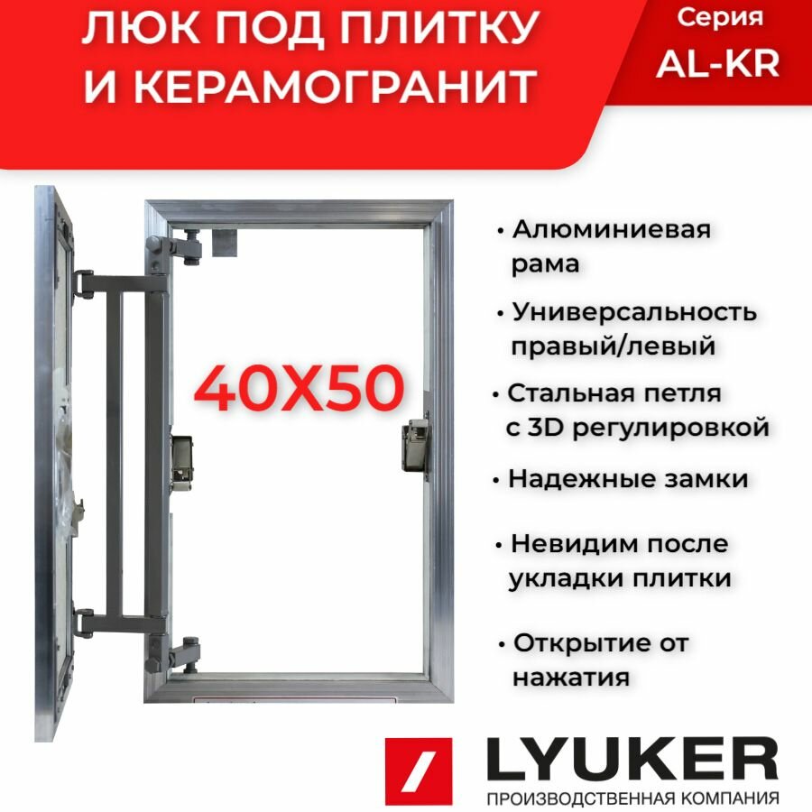Ревизионный люк (ВхШ) 50x40, LYUKER, серия AL-KR , алюминиевый, под плитку, с регулировкой петли