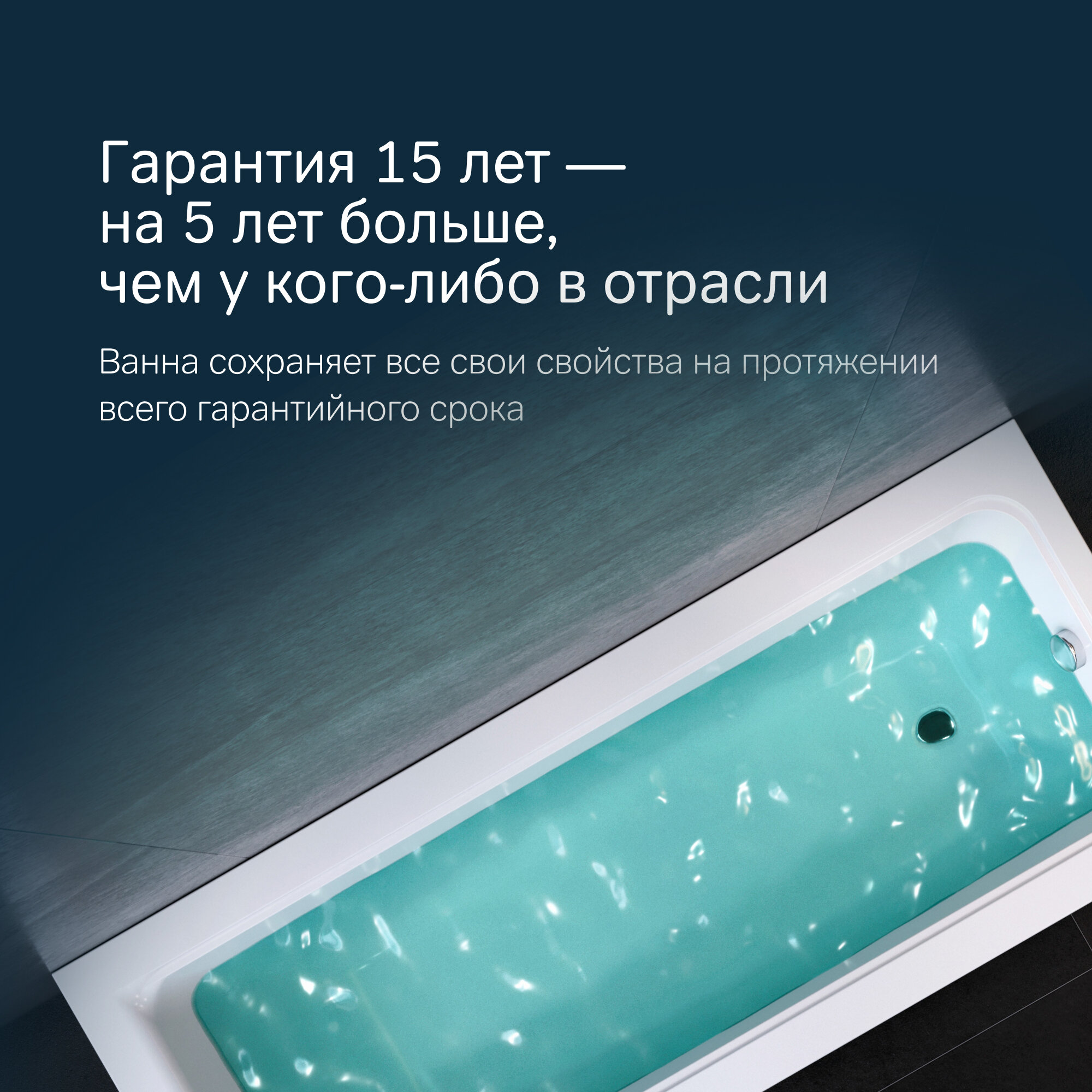 Ванна акриловая 170x70 см AM.PM Gem W90A-170-070W-A1, литьевой акрил, ванная 170 на 70, вакуумная формовка, усиленный корпус, ванны акриловые, увеличенный внутренний объем, гарантия 15 лет, Германия