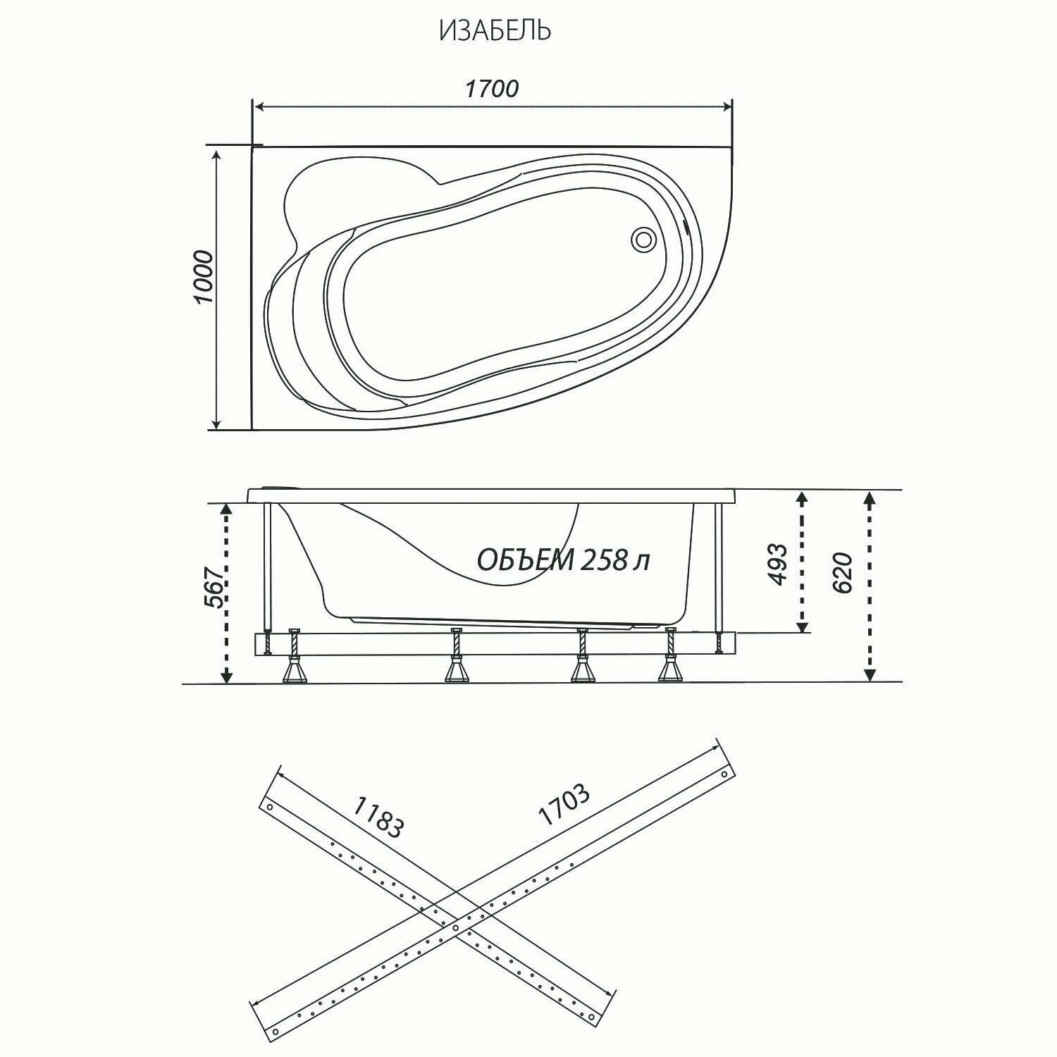 | Подробная комплектация | Ванна; Каркас; Дополнительно к акриловой ванне Изабель 170 (правая) вы можете приобрести декоративную фронтальную панель (код товара на Озоне: 904476004). |