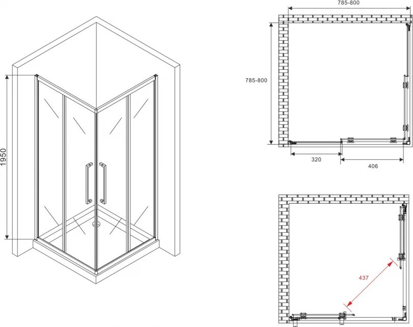 Душевой уголок Black&White Stellar Wind S101 800х800