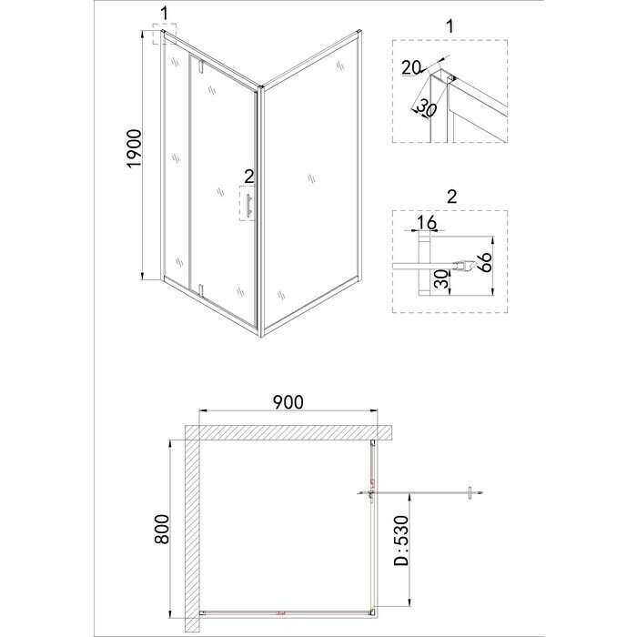 Душевое ограждение Niagara Nova NG-83-9AB-A100B (90*100*195) прямоугольник, дверь распашная, 2 места