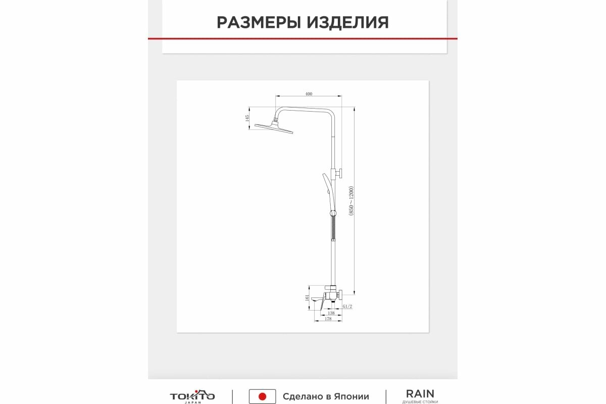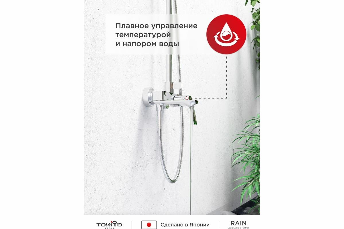 Душевая стойка с поворотным смесителем TOKITO 153х25х52 Хромовый интересное: