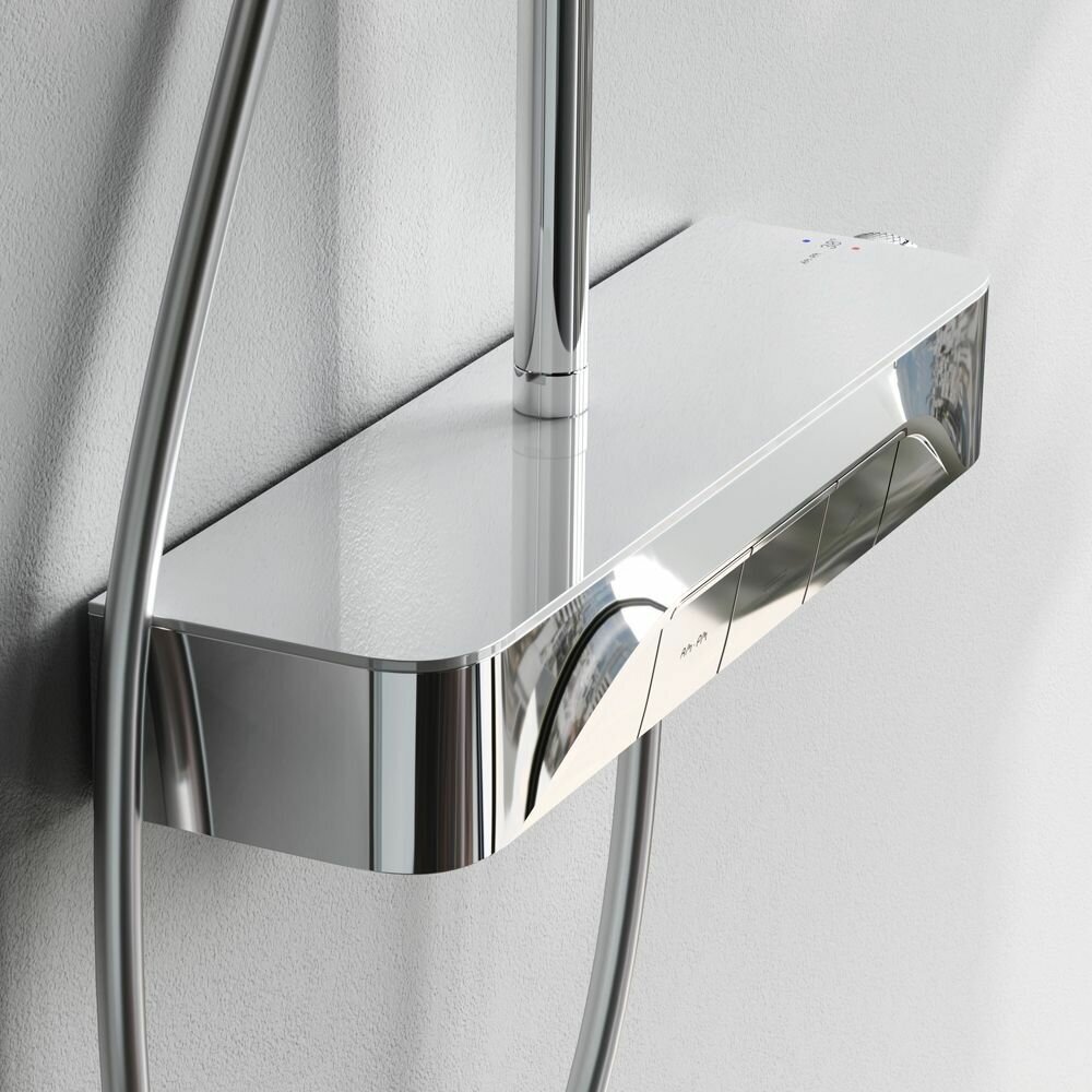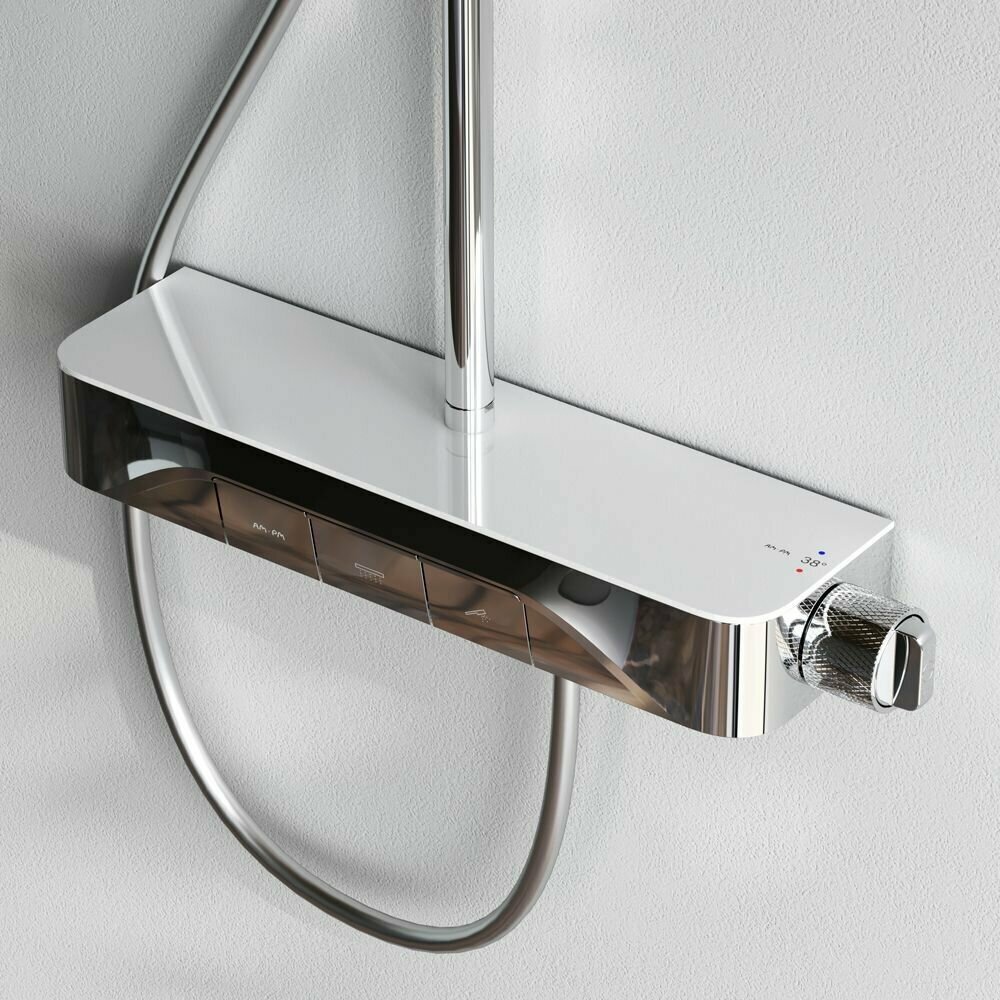 Душевая система с тропическим душем и смесителем AM.PM Func F078F200 хром, с термостатом и полкой, без излива, телескопическая штанга, высокочувствительный термоэлемент, переключение нажатием клавиш, Германия