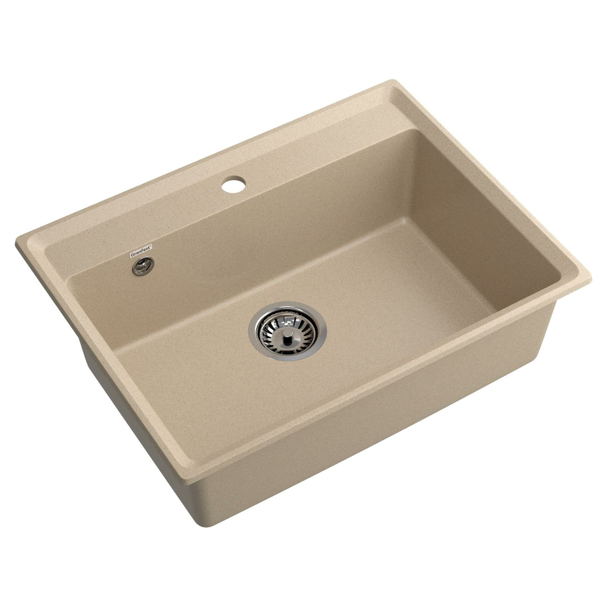 Мойка кухонная врезная, GranFest, Level, искусственный мрамор, 660х500 мм, + сифон, песочная, GF-LV-660