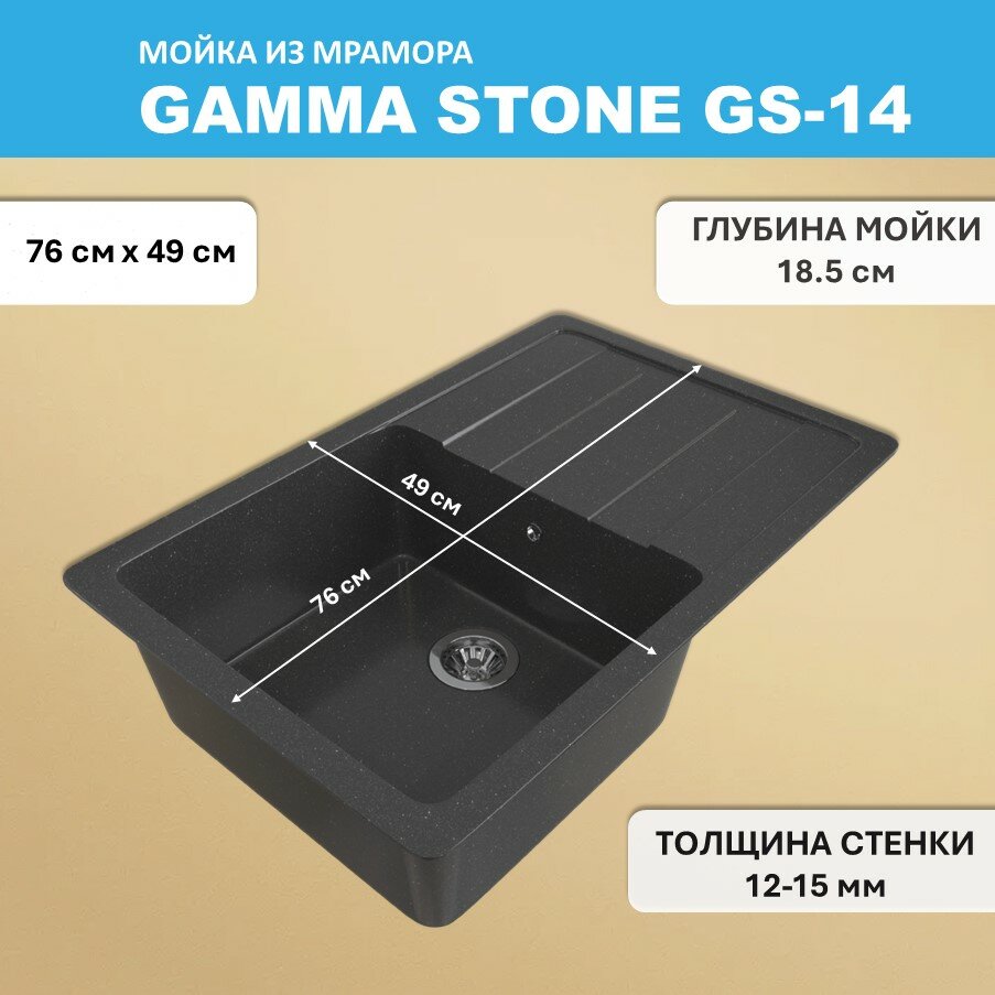 Купить Кухонная мойка Gamma Stone GS-14 (760*490) Черный