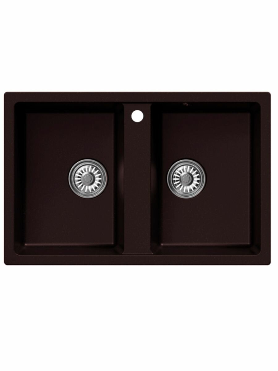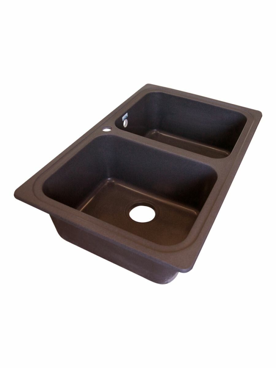 Купить Мойка для кухни врезная прямоугольная, двухчашевая, двойная, из искусственного камня, цвет шоколад, 770*500*190 мм