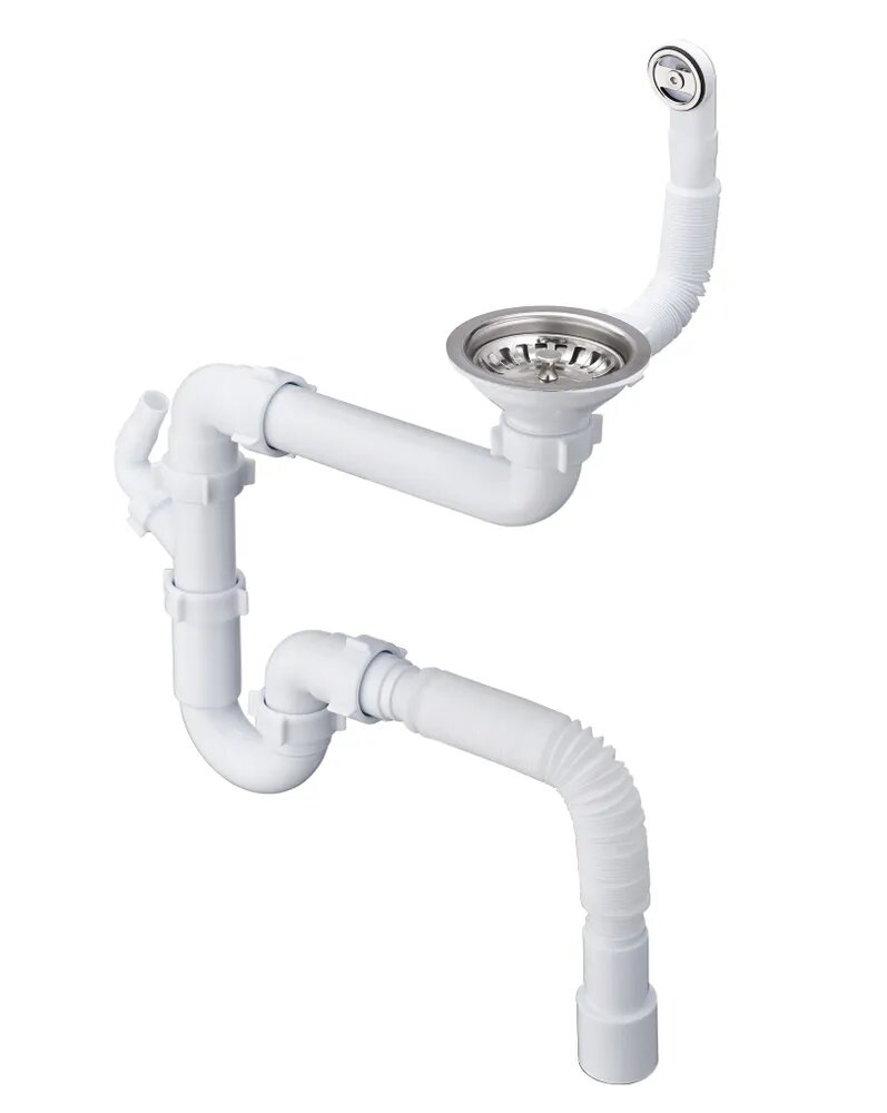 Сифон для мойки большая горловина с переливом, с отводом под сливной шланг и со съёмной корзинкой для мусора