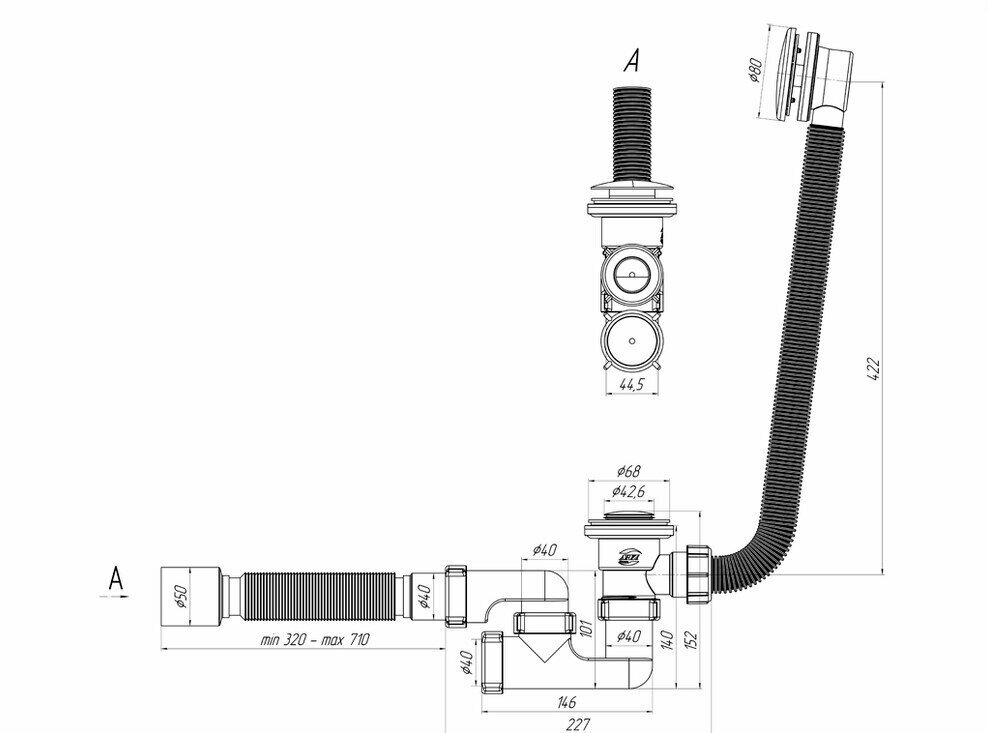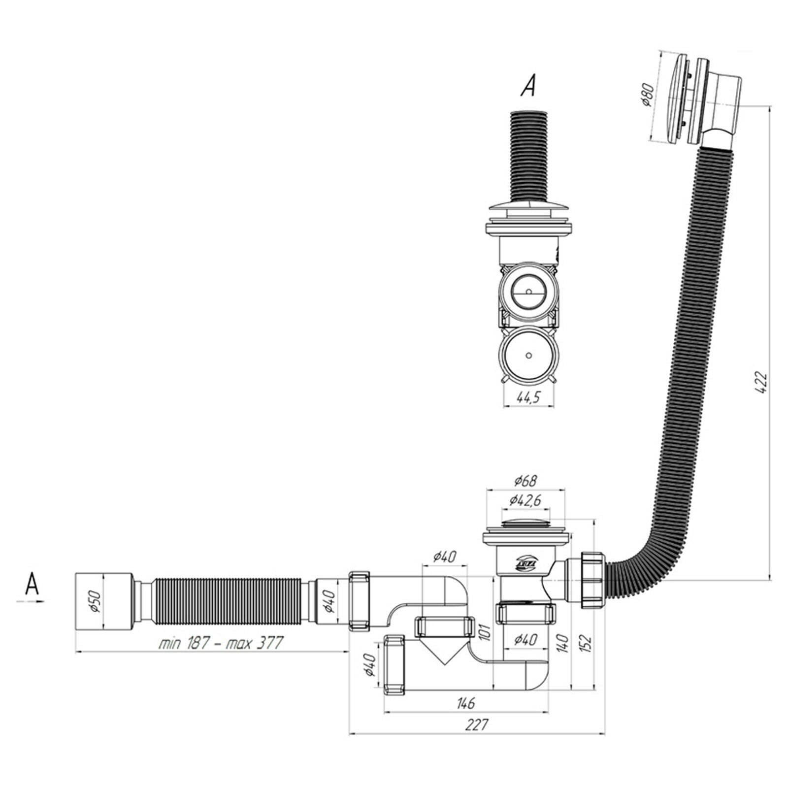 Слив-перелив для ванны АНИ пласт регулируемый Клик-клак с гибкой трубой (сетка) (EC255S) интересное: