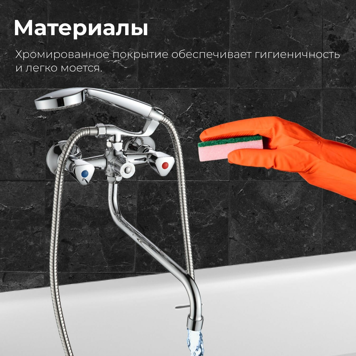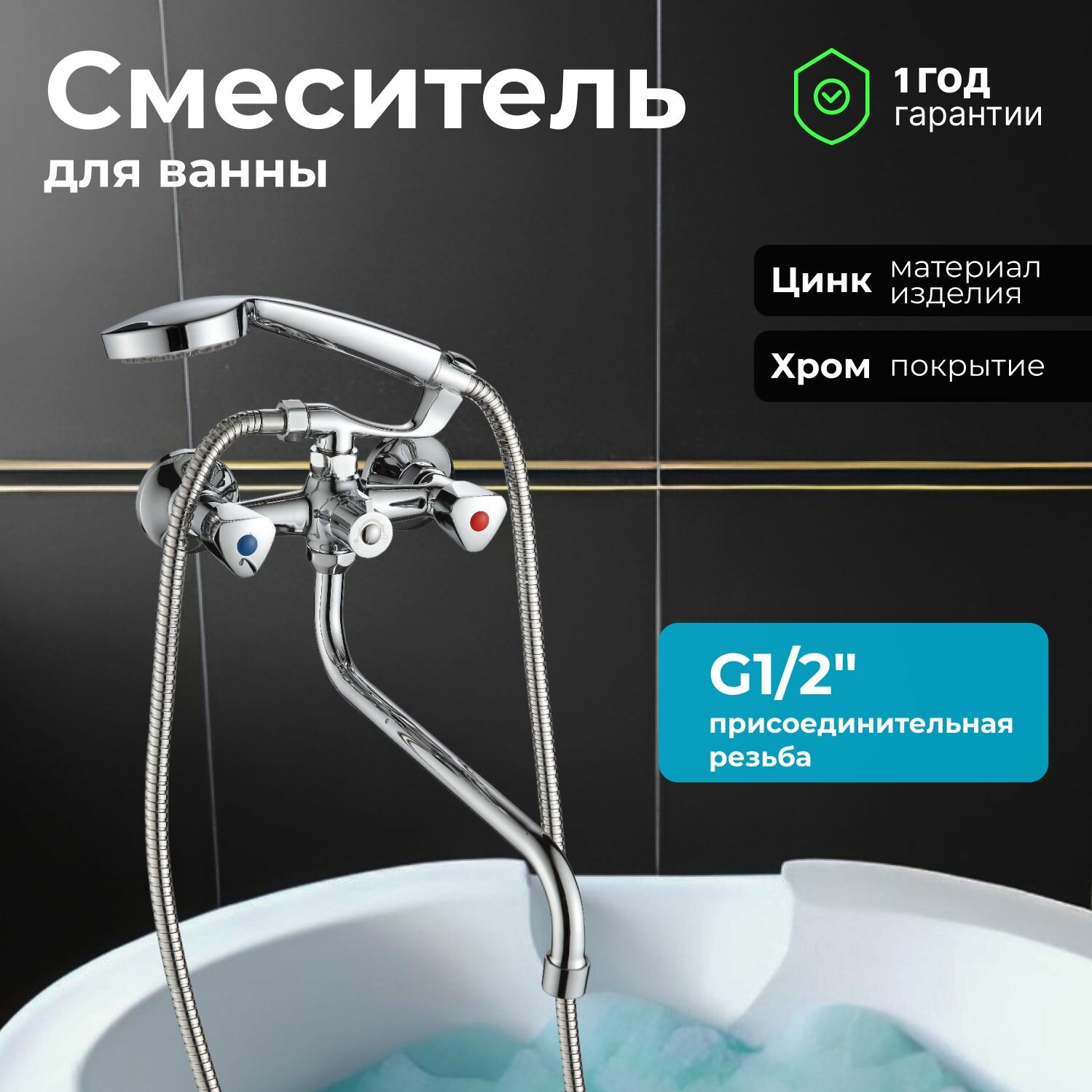 Смеситель для ванны с душем с длинным поворотным изливом NNF-0012 вентильный кран в ванную, для раковины цвет: хром
