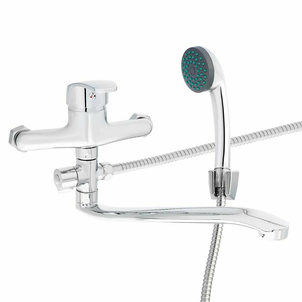 Смеситель для ванны с душем СоюзКран вентильный, однорычажный, плоский излив 30 см, лейка и шланг для душа в комплекте интересное: