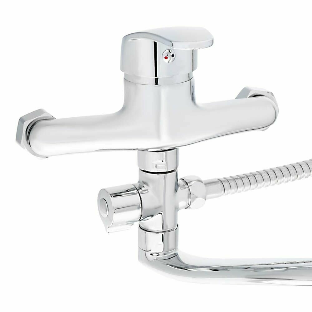 Купить Смеситель для ванны с душем СоюзКран вентильный, однорычажный, плоский излив 30 см, лейка и шланг для душа в комплекте
