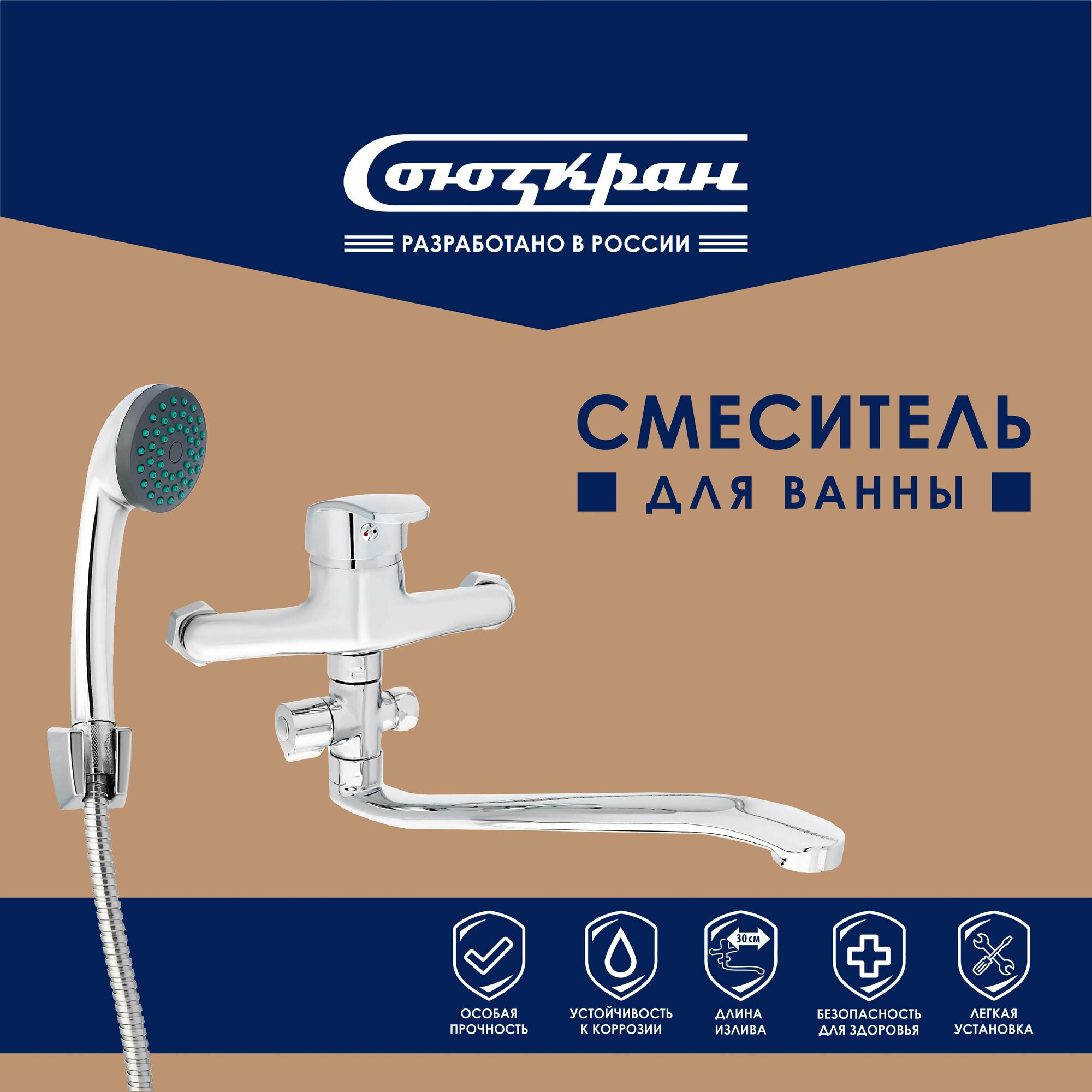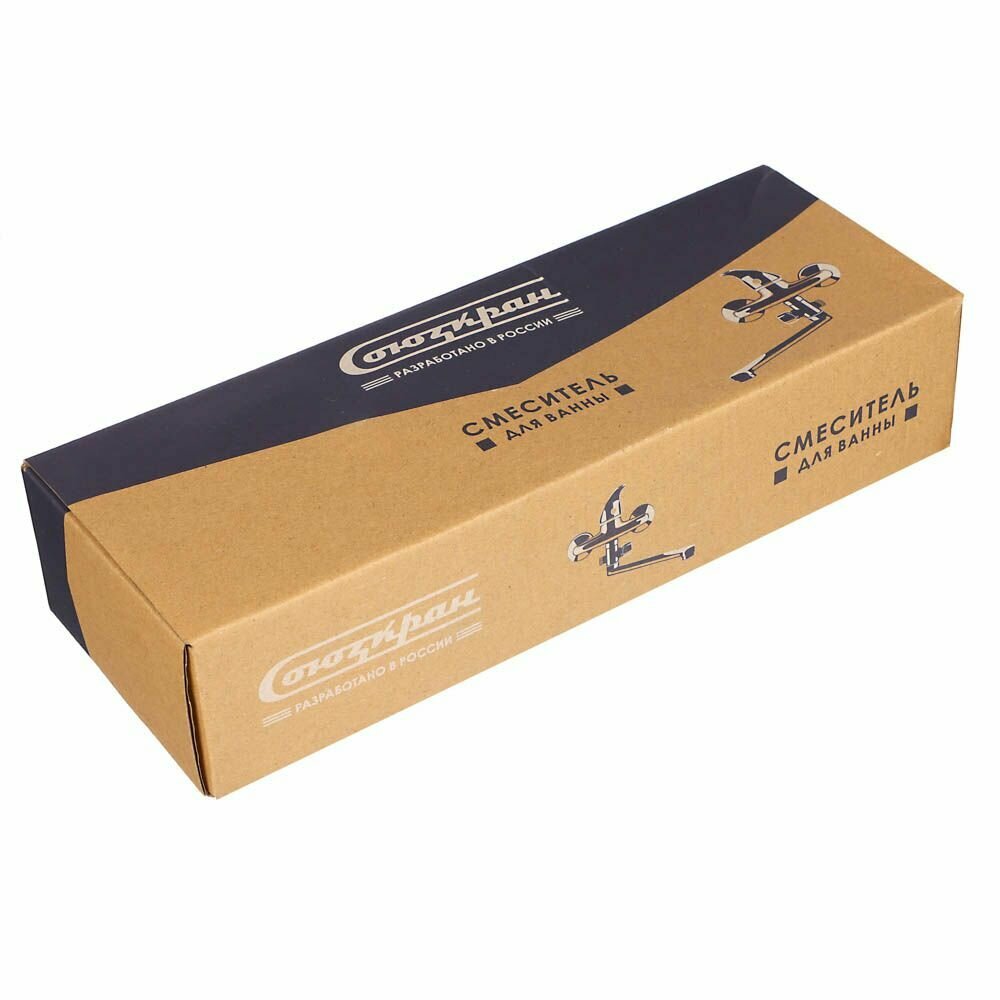 СоюзКран Смеситель для ванны с душем, плоский излив 30см, кер. картридж 40мм, хром, цинк, SK09-I101