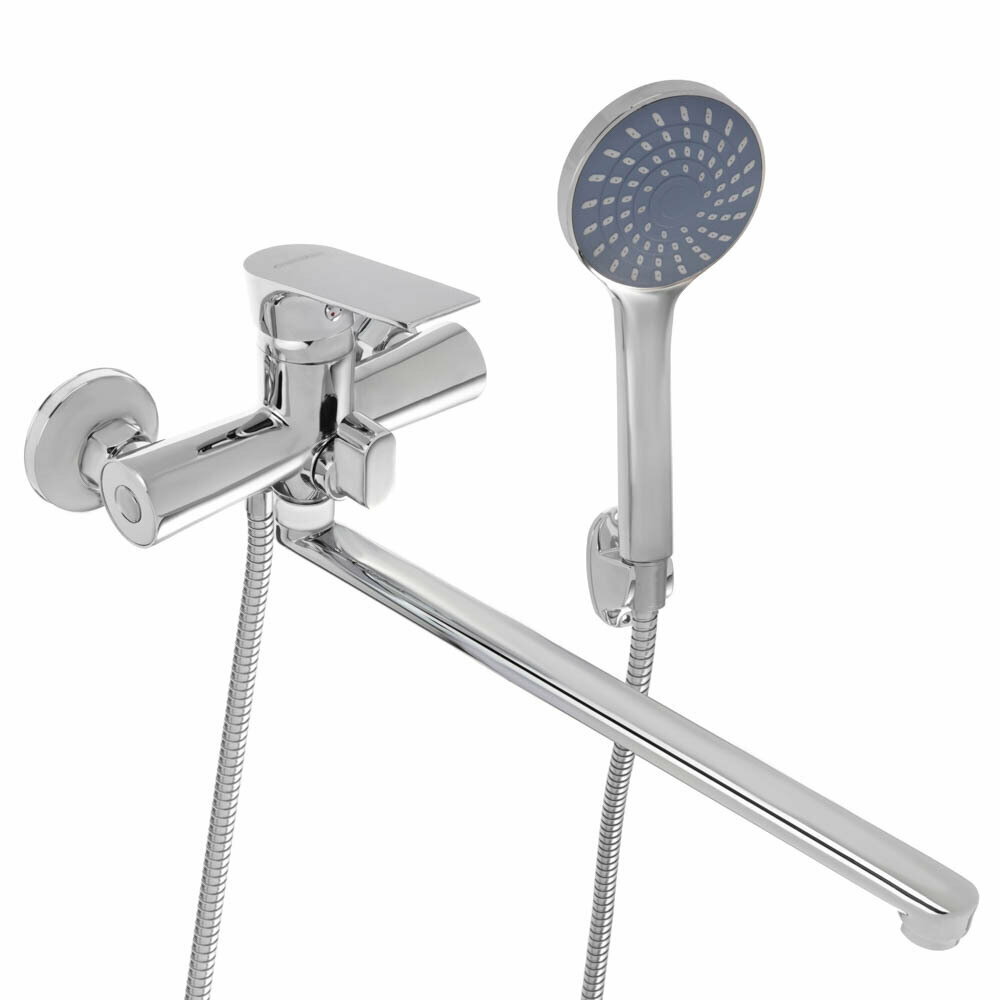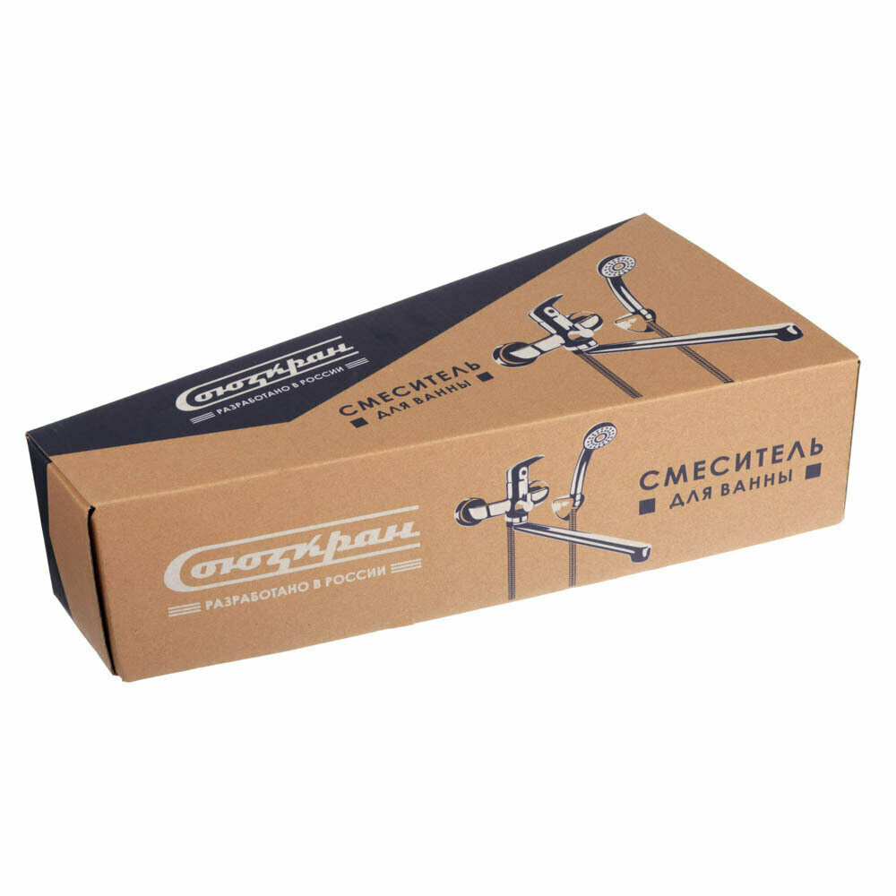 Смеситель для ванны с душем, прямой излив 35 см СоюзКран, однорычажный, лейка и шланг для душа в комплекте интересное: