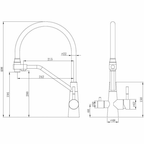 | Излив | выдвижной, гибкий, для фильтрованной воды, поворотный |