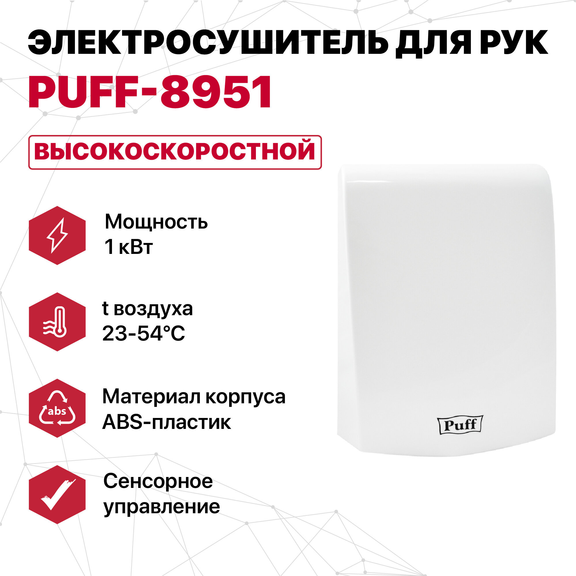 Сушилка для рук электрическая, автоматическая 8951, Puff, Арт:1401.324 интересное: