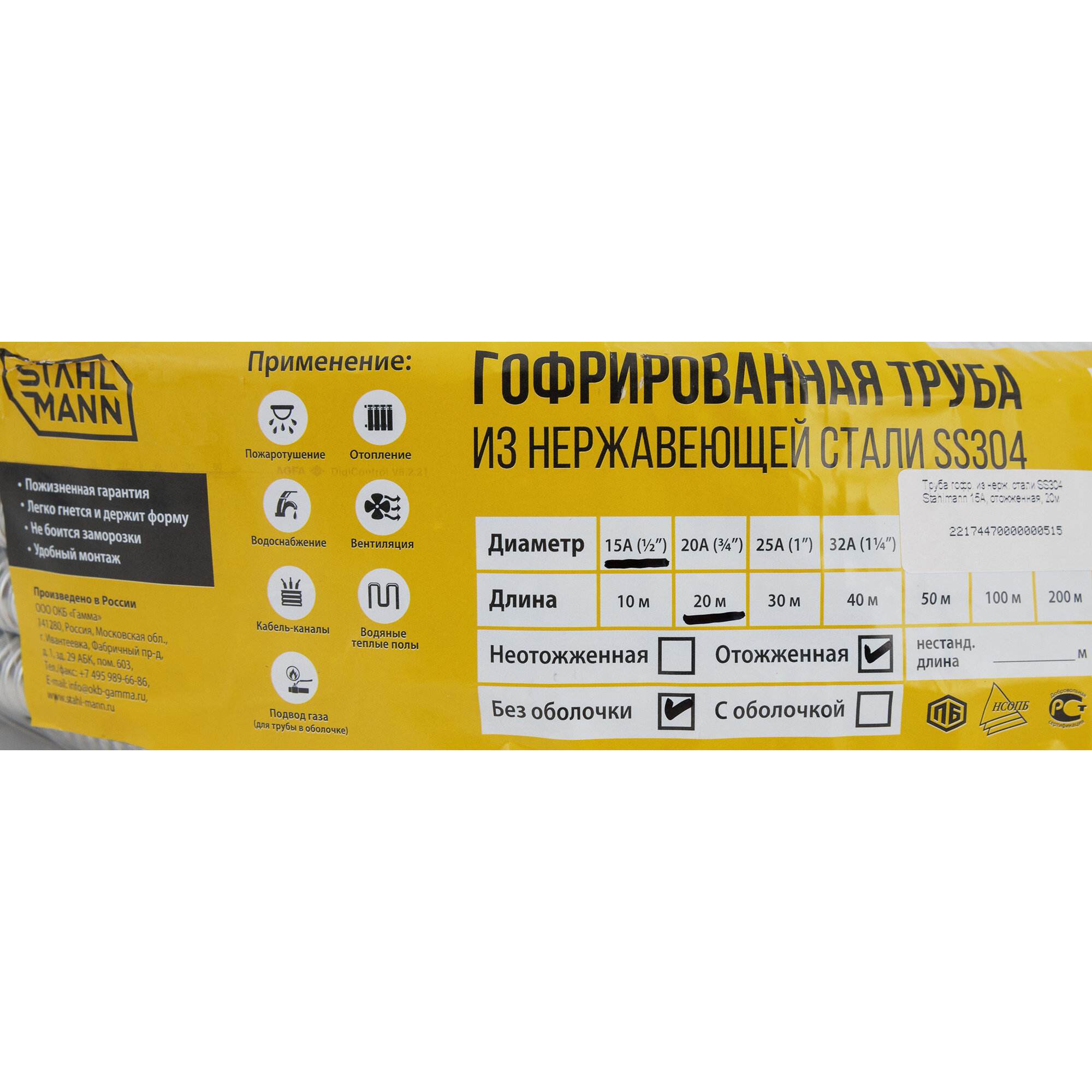 Труба гофрированная из нержавеющей стали Stahlmann ?20 мм отожженная бухта 20м