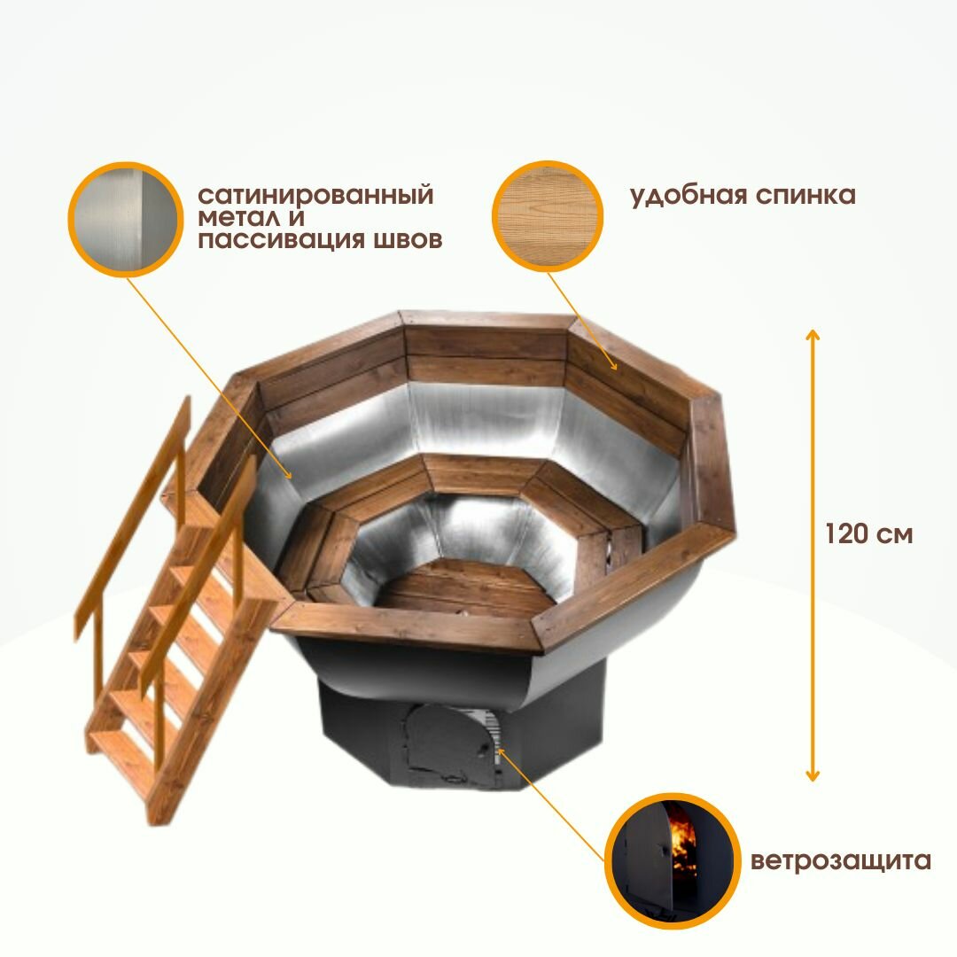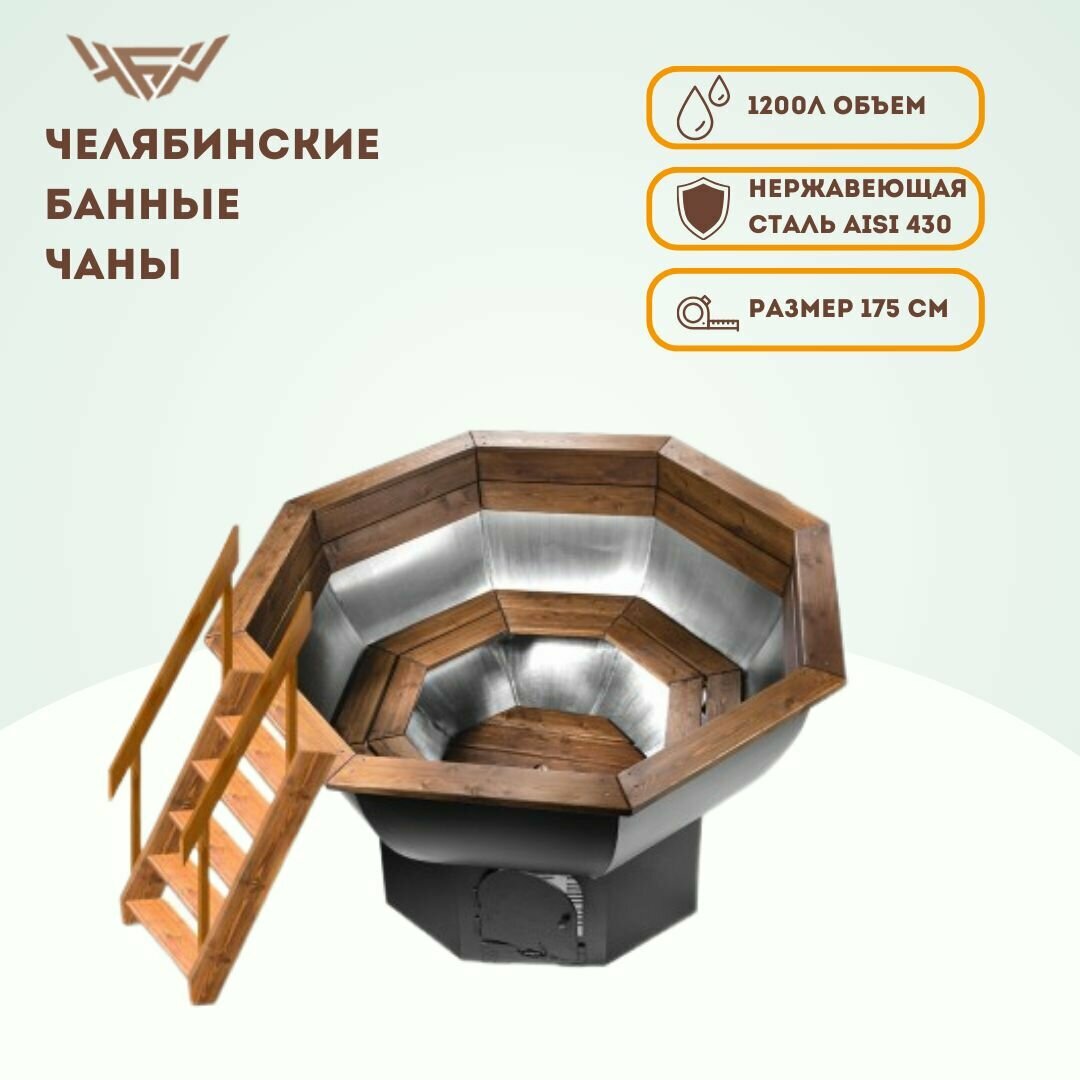 Банный чан 175 см, нерж. AISI 430 на ветрозащите. Комплект интересное: