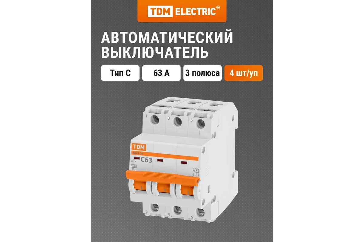 Автоматический выключатель TDM Electric, ВА47-29, 3 полюса, 63 А, 4.5 кА, С, SQ0206-0115
