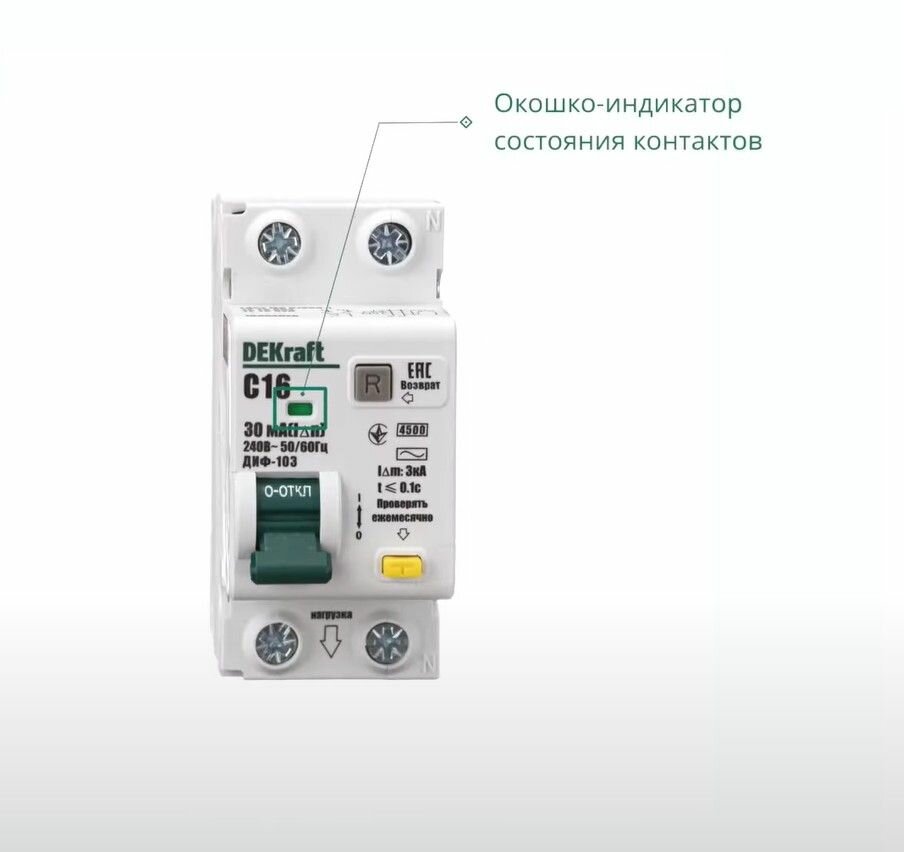 СохранитьДифференциальный автоматический выключатель DEKraft ДИФ-103 1P+N 32А 30мА 4.5кА класс AC интересное: