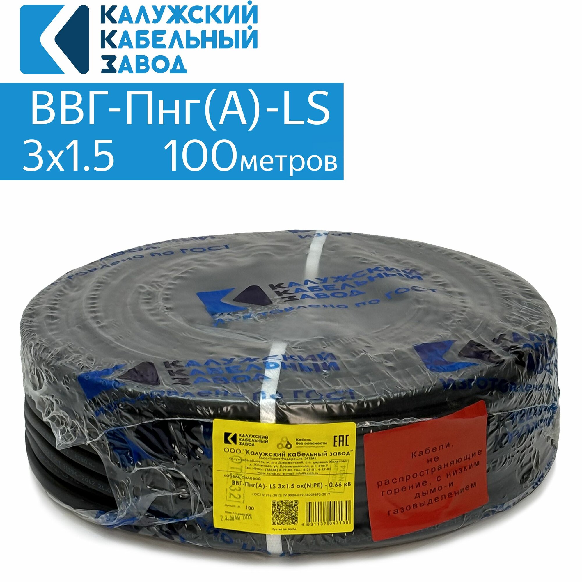 Купить Кабель силовой ВВГ-Пнг(А)-LS 3х1.5 кв. мм калужский кабельный завод ГОСТ черный 100 м