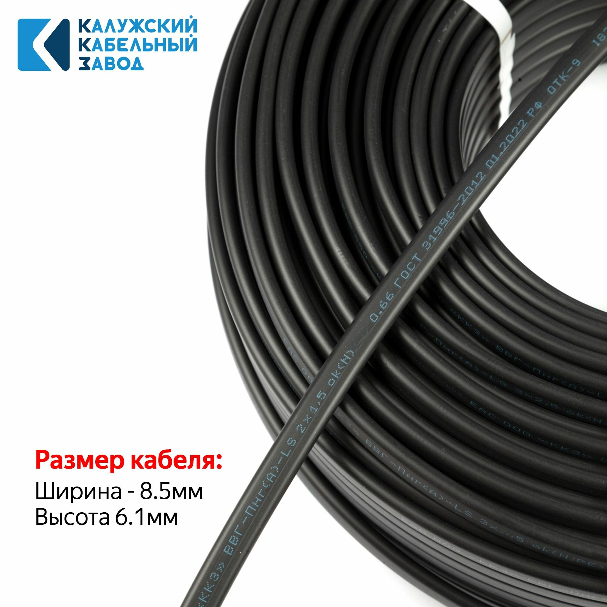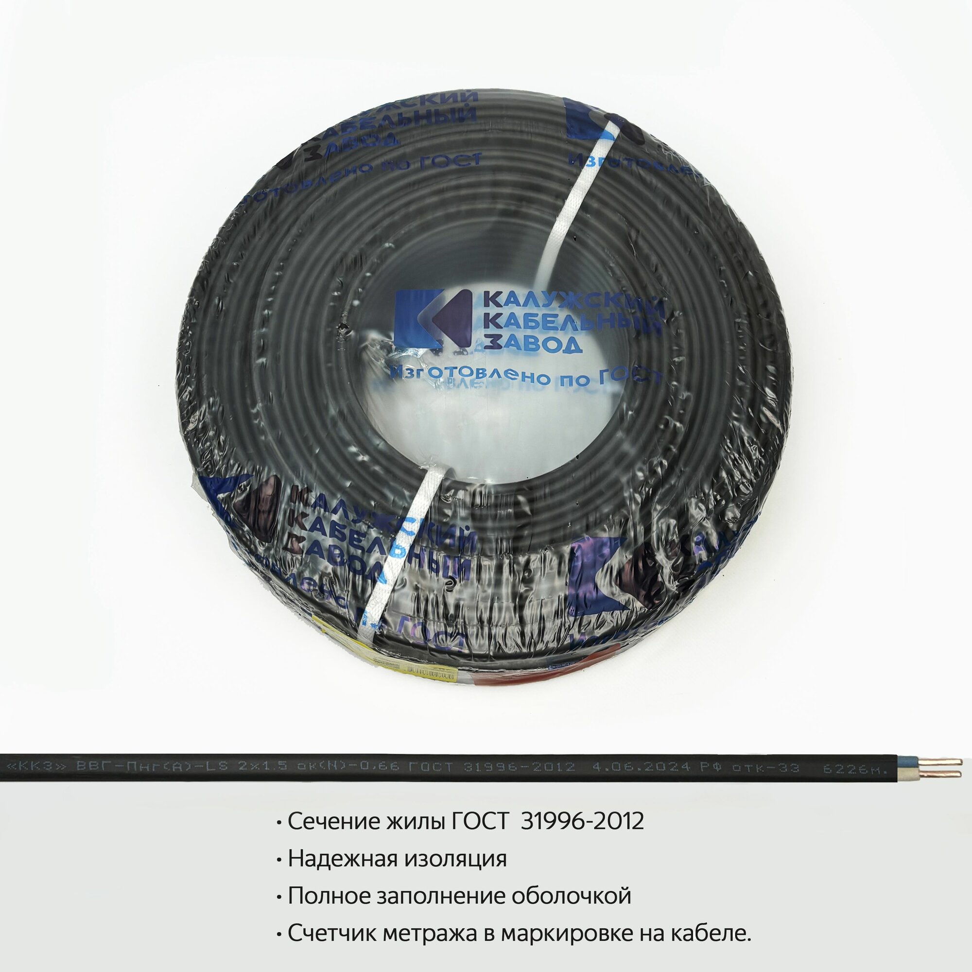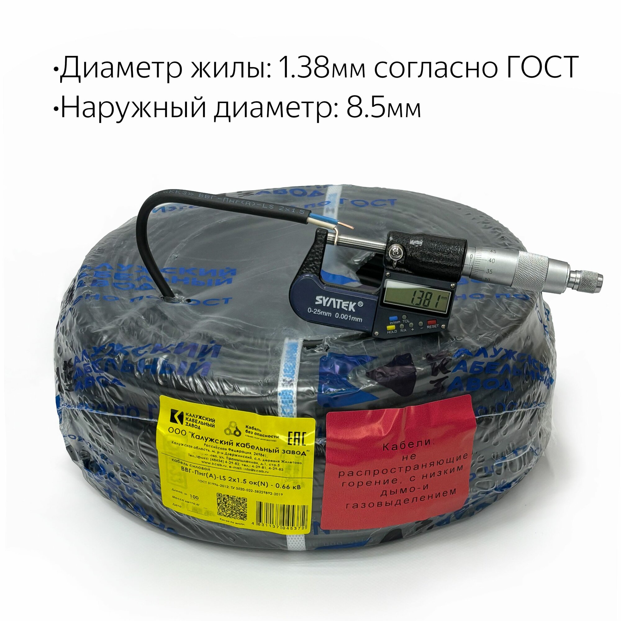 Кабель ВВГ-Пнг(А)-LS 2х1,5 ГОСТ Калужский кабельный завод, 15 метров