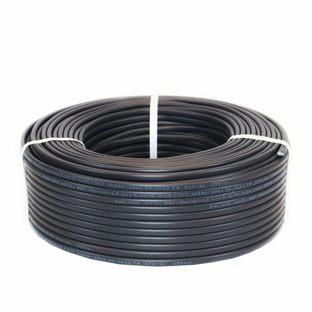 Кабель силовой ВВГ-Пнг(А)-LS 2х1.5 кв. мм калужский кабельный завод ГОСТ черный 100 м