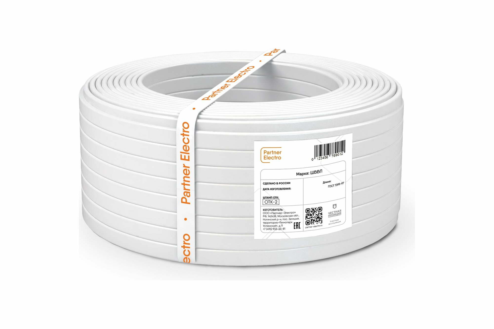Шнур ШВВП 2х0.75 380В Б (уп.50м) партнер электро УТ-00000147