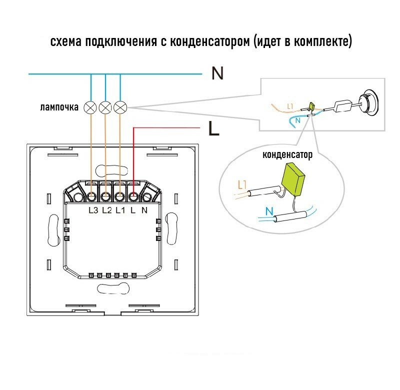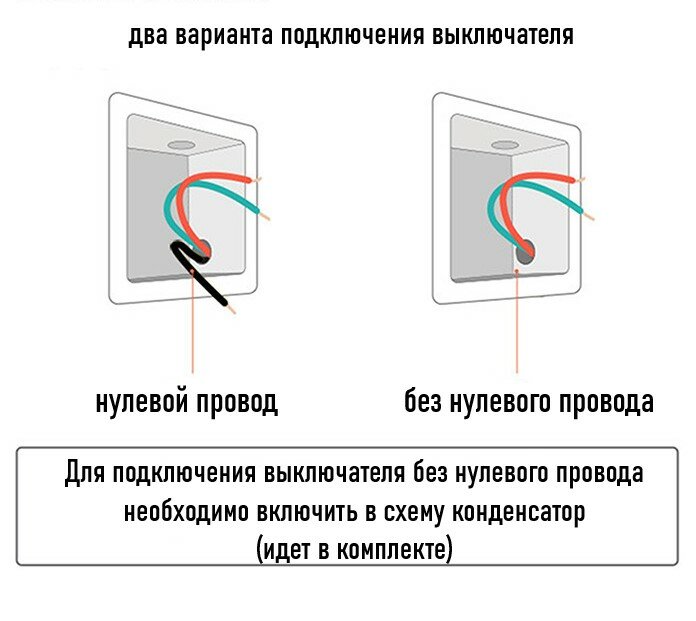| Дополнительная информация | Универсальный выключатель. Можно подключить как с нулем так и с конденсатором. |