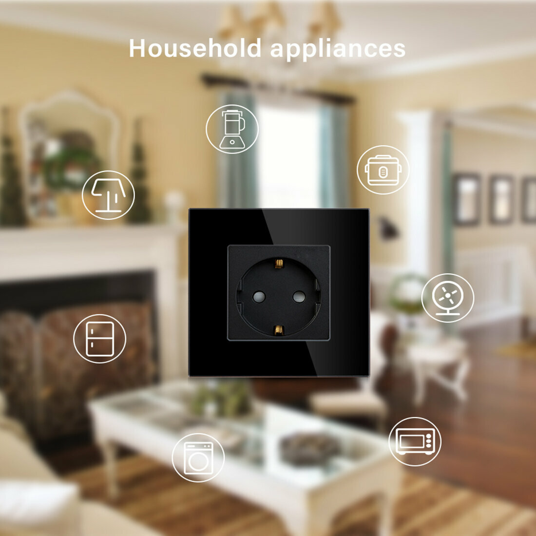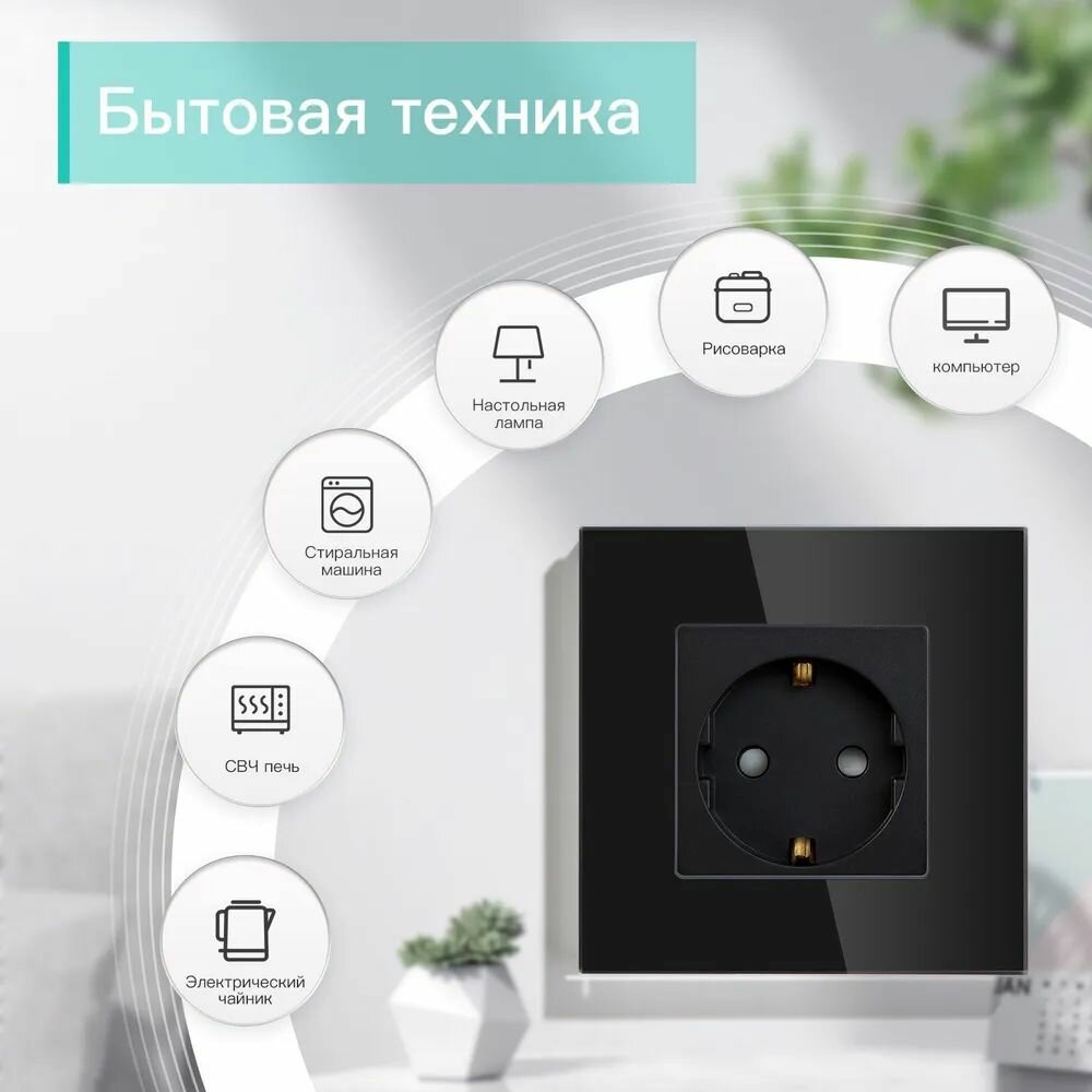 Купить Розетка электрическая 1 пост 16А, рамка 86х86мм стекло, цвет черный