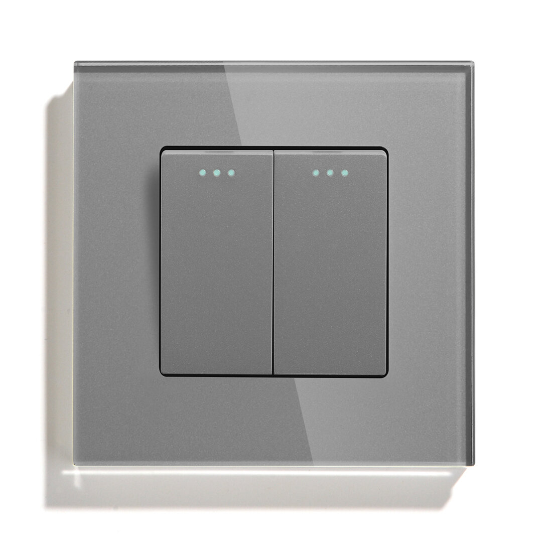 Купить Выключатель механический, 2 клавиши, 1 пост, рамка стекло 86х86мм цвет серый