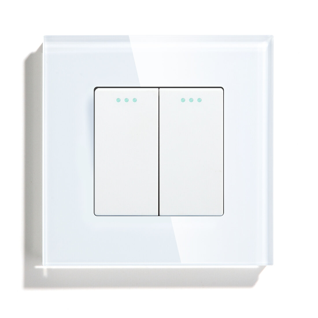 Выключатель механический, 2 клавиши, 1 пост, рамка стекло 86х86мм , цвет белый
