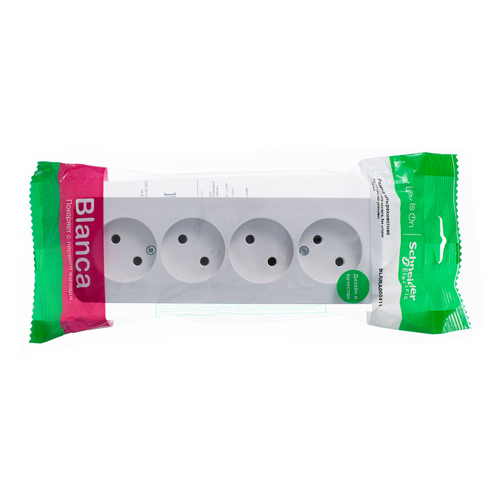 4-ая розетка Schneider Electric BLANCA открытой установки, без заземления, без шторок, белый BLNRA000411